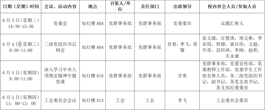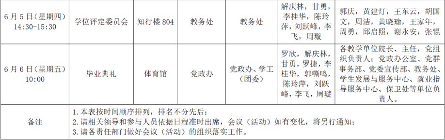 2025年春季学期第十六周全校性会议活动安排表