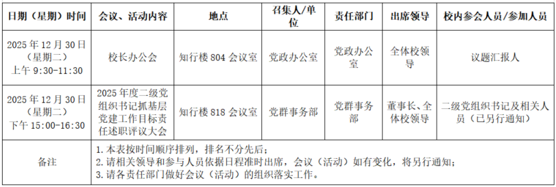 2025年秋季学期第十八周全校性会议活动安排表