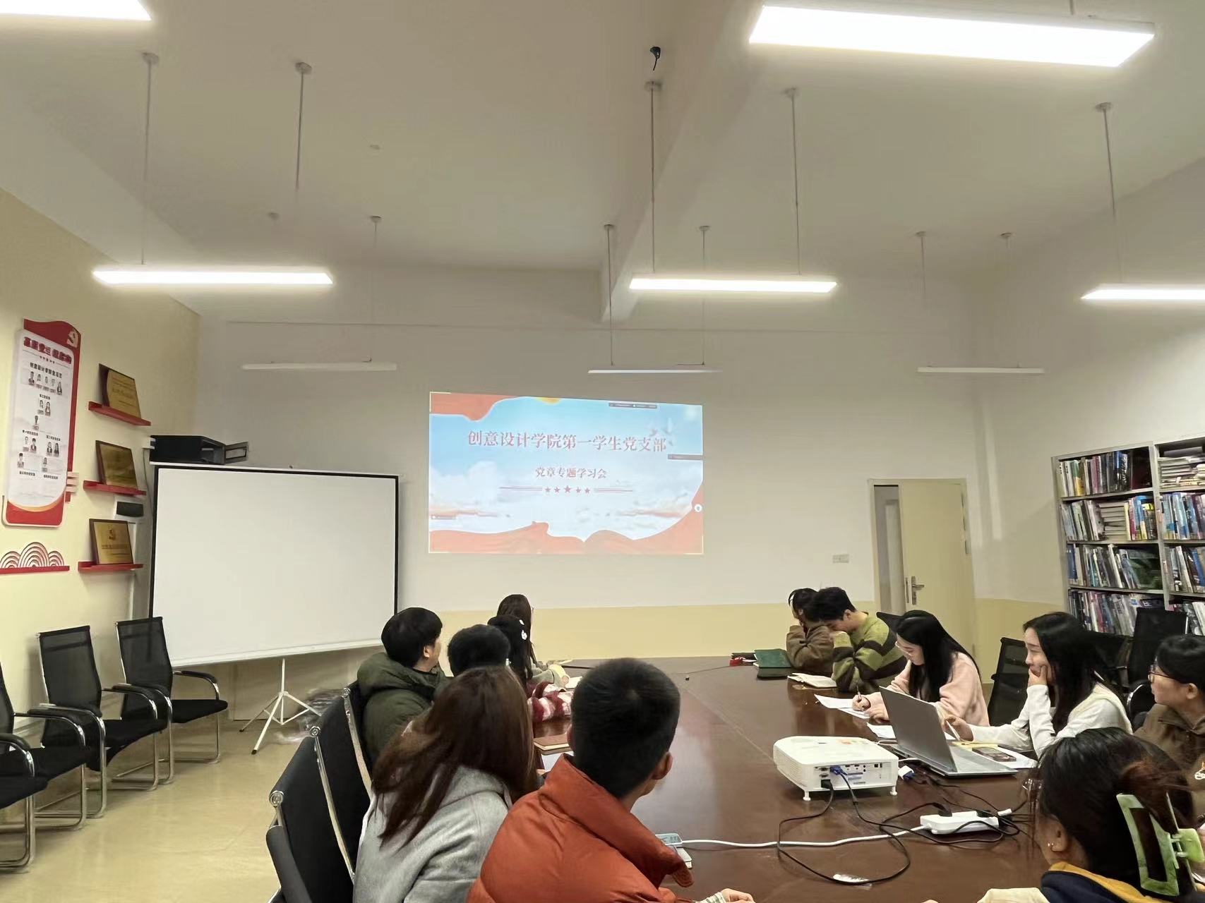 为深入学习贯彻习近平新时代中国特色社会主义思想,进一步增强党员党性修养,不断提高党员政治素养和综合素质,2024年4月3日,创意设计学院第一学生党支部在E504召开《中国共产党章程》专题学习会,会议由党支部书记周金悦主持,支部全体成员参会。