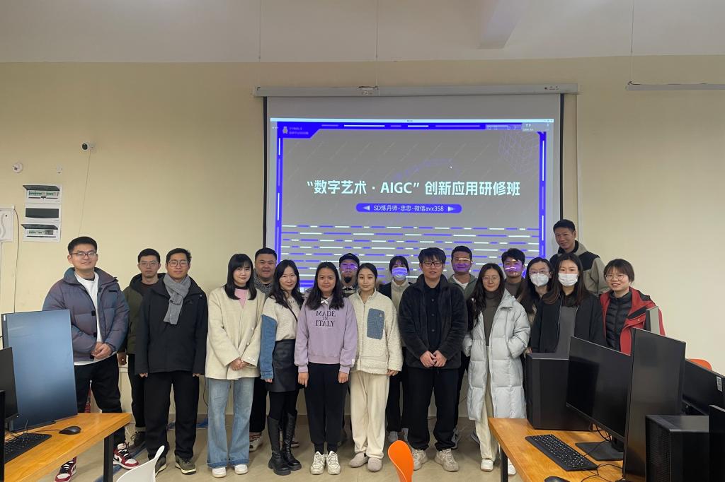 2023年,生成式人工智能(Artificial Intelligence Generated Content,简称“AIGC”)的浪潮涌向各个领域,尤其是艺术与设计领域。为增强教师数字化教学技能,提升教师AI设计能力,我院1月15日至1月19日在E117组织开展“数字艺术·AIGC”创新应用研修。创意设计学院全体教职工参与研修。