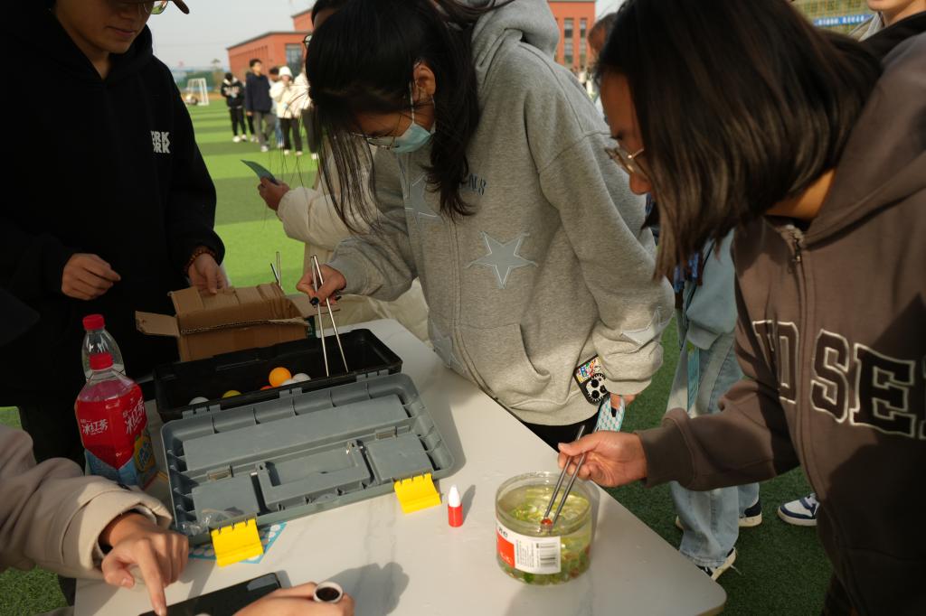 活动现场欢声笑语此起彼伏,在“你来比划,我来猜”游戏中同学们展示了彼此之间的默契;“单手沙包”游戏是最受同学欢迎的游戏,在规定时间中同学们不断突破自己,不断抓取更多的沙包。游园会场传出的阵阵笑声更是吸引了其他学院的同学,大家或驻足观看,或投身参与,活动现场气氛热烈。