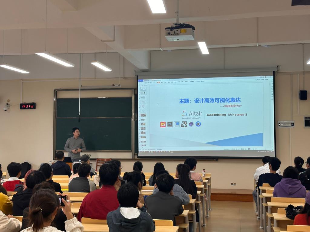 11月10日下午,产品设计专业在D108举办《AI赋能·设计高效可视化表达》学术讲座,邀请卓尔谟教育联合创始人沈应龙担任主讲人。产品设计教研室主任苏锐、产品设计教研室王柳凤、杨宇、秦泽雅、严若瑾、刘昊老师及产品设计专业学生参加此次讲座。