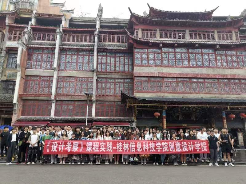 为进一步改革传统教学方式,开阔学生设计视野,提高设计水平,上周创意设计学院2020级动画、环境、数媒、视传专业的184名同学展开了为期6天的《地域民族文化社会实践》课程实践教学活动。本次考察由田婧、李辉等专业教师带队,线路包括恭城县文武庙、红岩村、阳朔县兴坪古镇、灵田县大圩古镇、灵田起义旧址、桂林市博物馆、东西巷、靖江王府等桂林市著名地域景观。