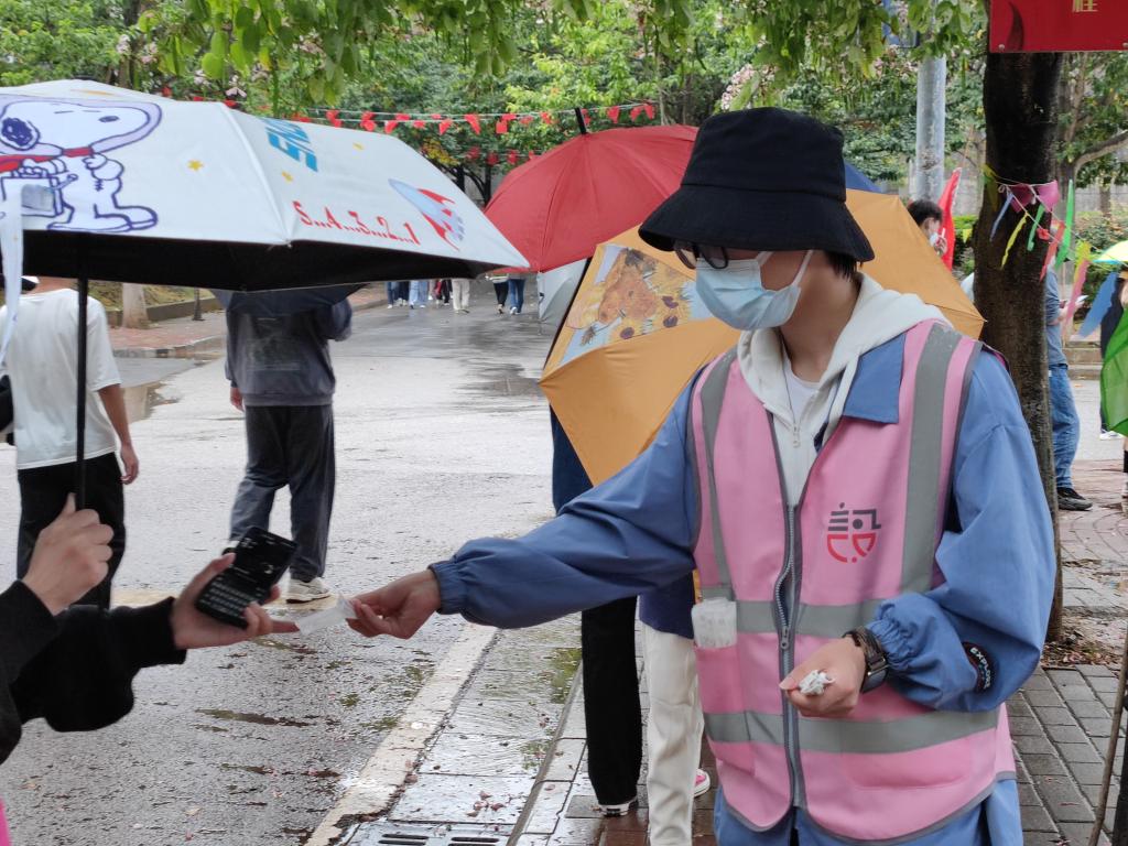维护队伍秩序、给学生发棉签、扫码登记同学做核酸信息是他们的日常工作,同时创意设计学院学生党员先锋队还协助辅导员做好同学们疫情期间的心理疏导工作。