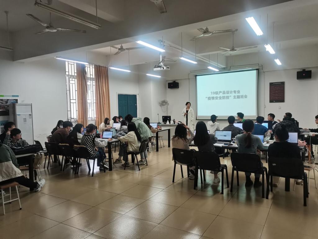 当前,国内疫情呈现多源头多点散发状态,疫情仍在传播,风险持续存在。学院要求各系要高度重视,提高警惕,严格落实学院各项防控规定和措施。4月20日,严若瑾老师在42205教室召开了一次疫情防控教育主题班会,严格落实学院各项防控规定和措施,19级产品设计专业响应学院要求。