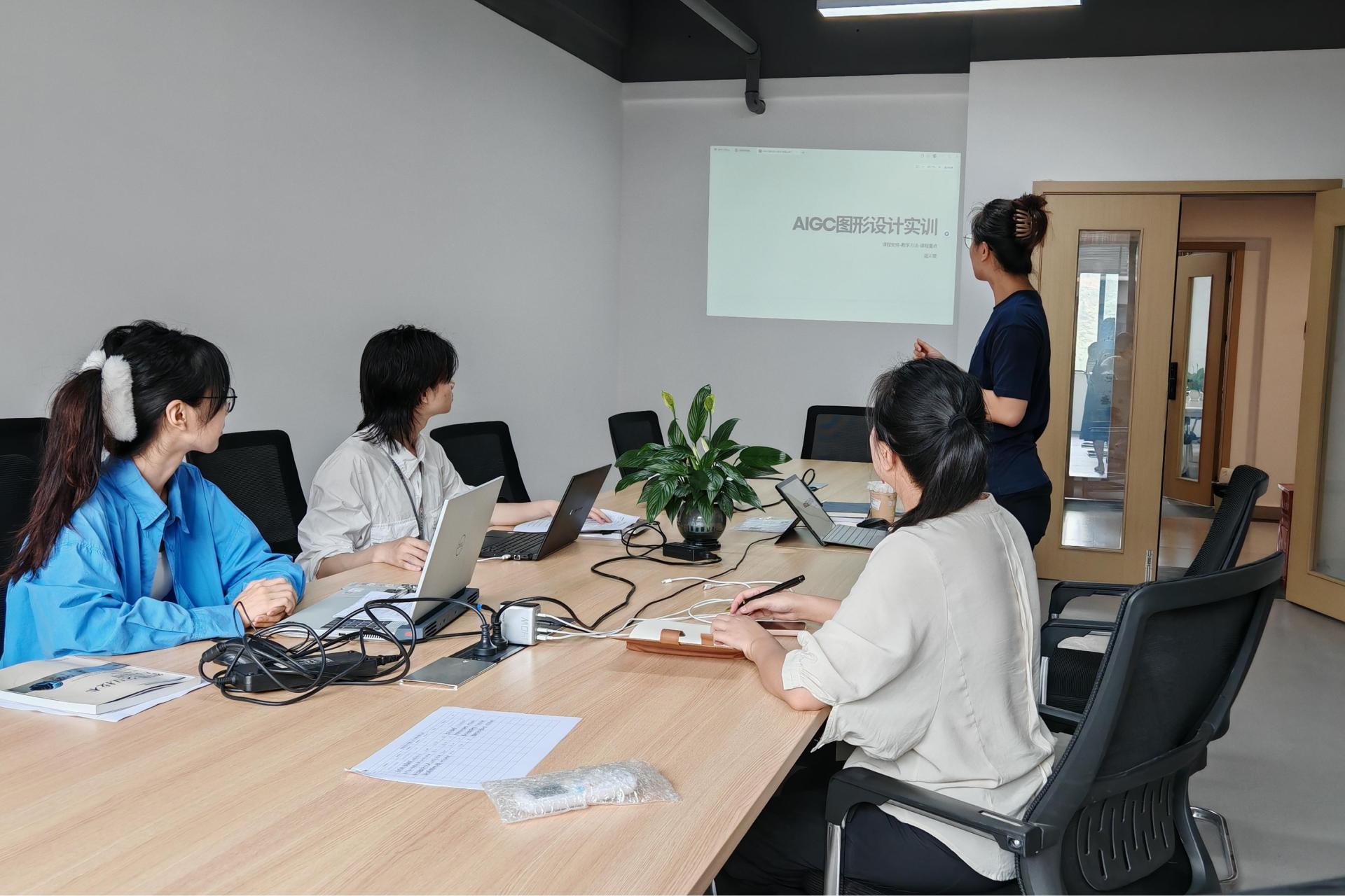 在说课过程中,教师们从教材分析、教学目标设定、教学方法选择、教学重难点把握以及教学过程设计等多方面展开阐述。《智能交互概论》课程的教师详细介绍了如何通过理论讲授与实际案例分析相结合的方式,引导学生深入理解智能交互的基本原理及应用领域,强调理论与实践相结合的教学理念,注重培养学生的创新思维和实践应用能力。《计算机辅助图形设计》课程的教师展示了丰富的图形设计案例,讲解如何利用计算机软件进行图形创意表达和设计实现,注重培养学生的图形设计技能和软件操作能力。《AIGC图形设计实训》课程的教师结合当下热门的人工智能技术,阐述了如何将AIGC技术融入图形设计教学中,让学生掌握前沿的设计工具和方法,注重培养学生的创新能力和技术应用能力。