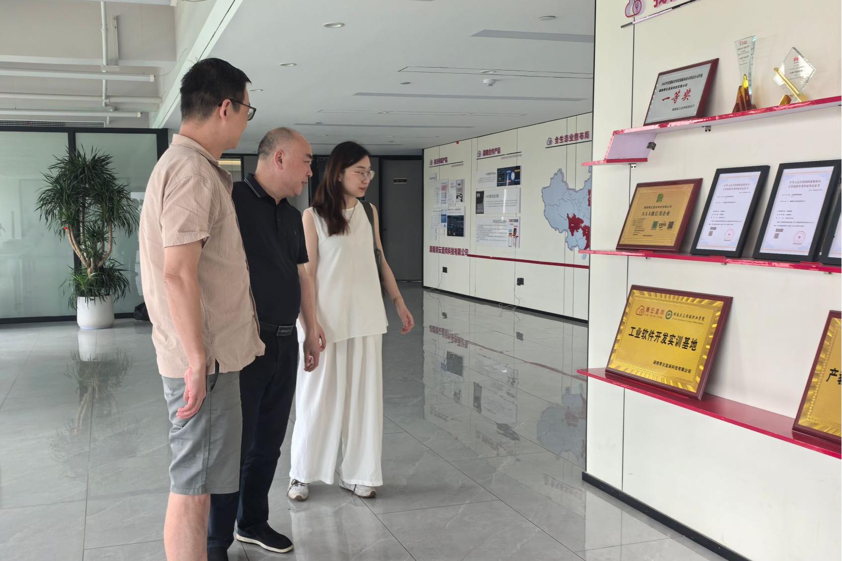为深化产教融合、拓展校企合作渠道,助力毕业生高质量就业,7月11日上午,创意设计学院院长黄晓瑜赴湖南青云直尚科技有限公司开展“访企拓岗促就业”专项行动,学院教师刘昊随行调研。双方围绕人才培养、产学研合作及就业岗位拓展等议题展开深入交流。