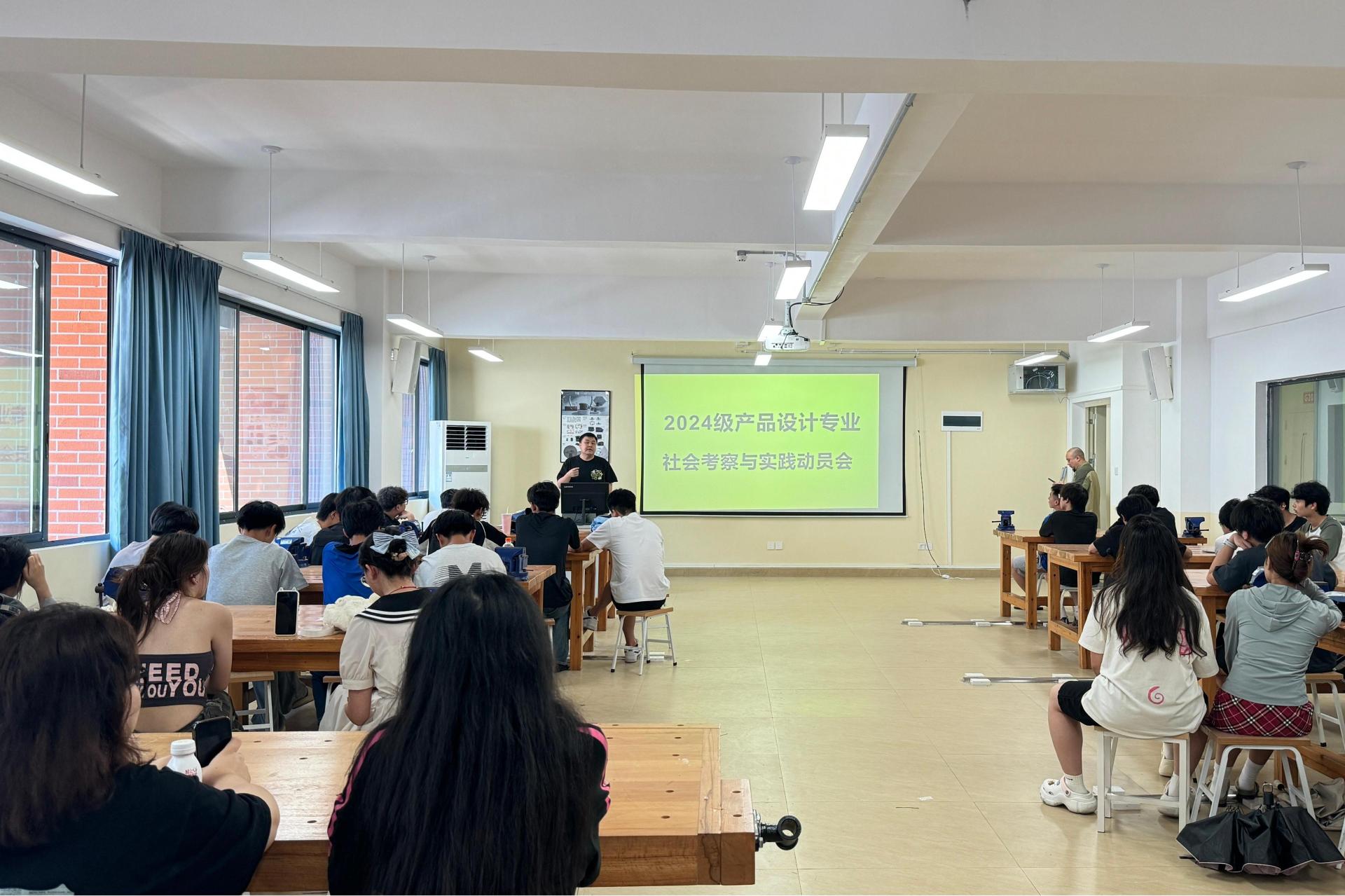 为确保2024级产品设计专业学生能够安全、高效地完成即将到来的社会考察与实践活动,产品设计教研室于6月25日在守正楼G202教室召开2024级产品设计专业社会考察与实践动员会。本次会议由教研室主任苏锐老师主持,产品设计专业教师与2024级学生共同参与。