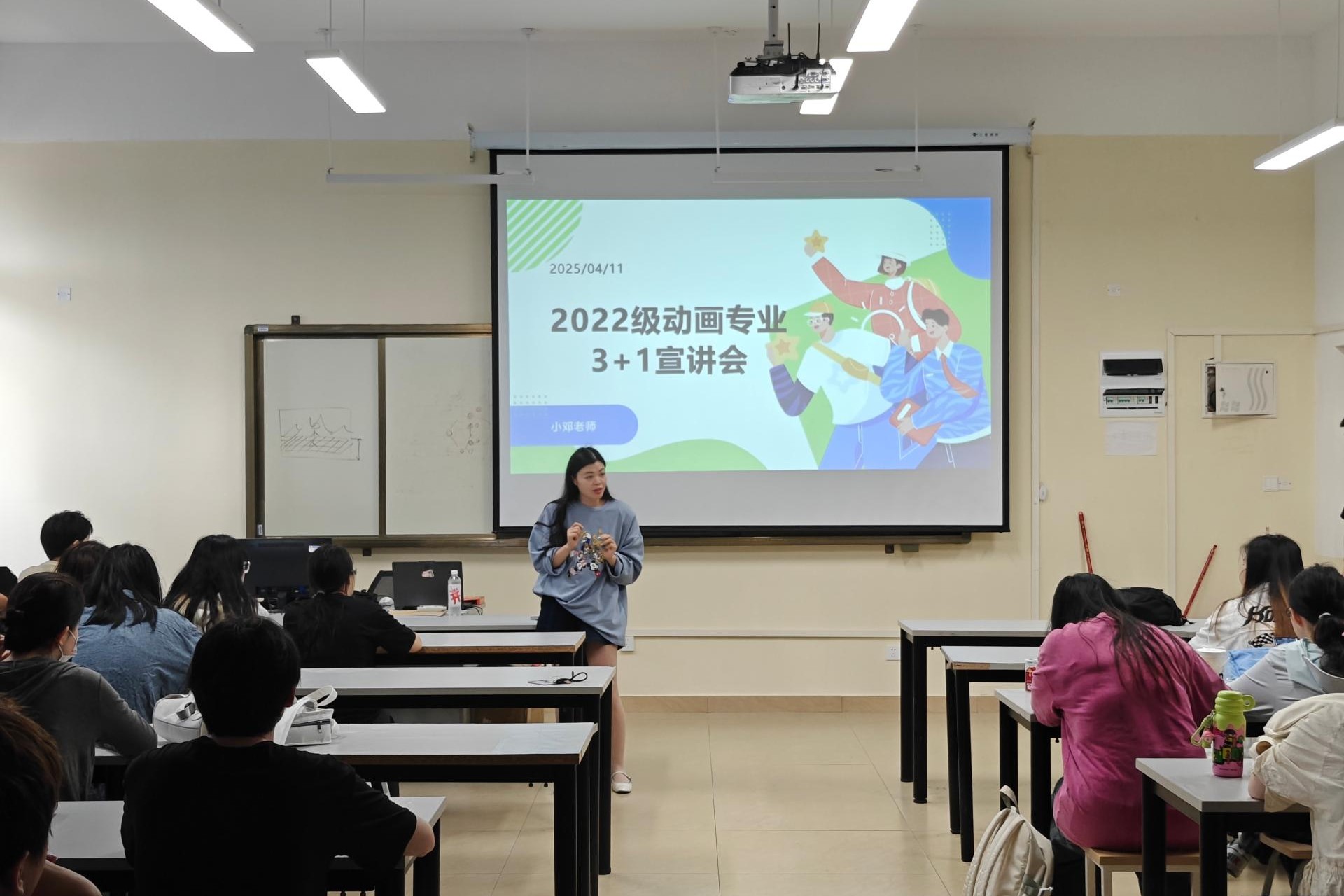 4月11日,创意设计学院在德远楼E401教室召开2022级动画专业“3+1”联合培养项目宣讲会。会议由创意设计学院院长助理伍菲主持,动画专业教师张洋、霍敏及2022级动画专业全体学生参加。