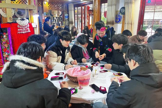 此次行程以“非遗传承与设计创新”为核心,深入贵州肇兴侗寨、千户苗寨、贵州省博物馆及安顺市云峰屯堡等地,通过实地调研、非遗技艺体验、文化对话等形式,探索传统民族艺术与现代设计的融合路径,为学生的专业学习和创作注入鲜活的文化基因。此次考察共采集非遗素材2000余件,包括影像、手绘、实物样本等。 李辉老师总结道:“地域文化实践不仅是专业教学的延伸,更是文化自信的培育过程。我们期待通过设计的力量,让非遗走出大山,融入当代生活。”