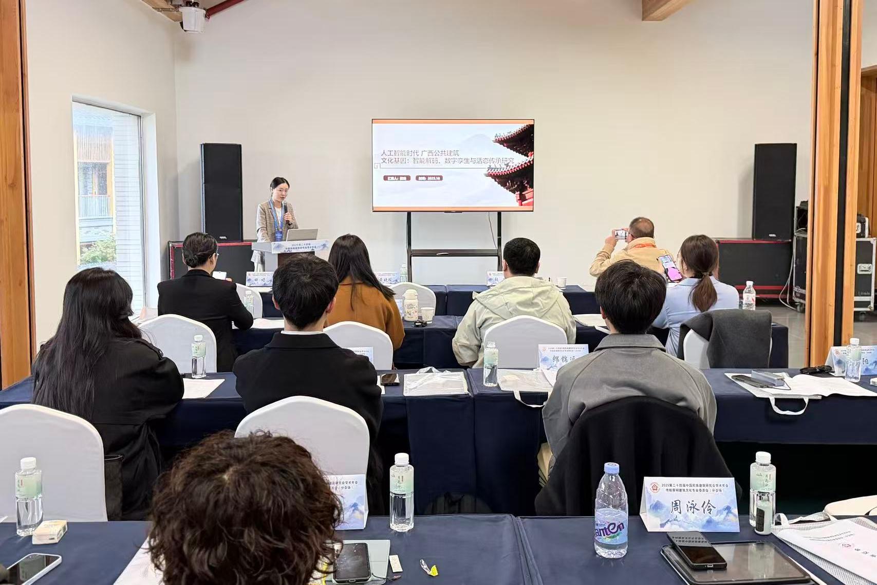 纽约国际官网创意设计学院院长黄晓瑜、院长助理田婧在2025中国民族建筑研究会传统宗祠建筑文化专业委员会学术年会进行报告分享。在专题报告环节中,创意设计学院院长黄晓瑜、院长助理田婧分别以《年轻群体与民族宗祠“文化互嵌”:AI传播矩阵下宗祠文化的传承创新与认同建构》《人工智能时代广西公共建筑文化基因:智能解码、数字孪生与活态传承研究》为题进行了详细的剖析。在随后的讨论环节,与会者纷纷就相关议题发言进行了深入交流和探讨。大家各抒己见,从不同角度分析了传统宗祠建筑文化的保护与利用问题。