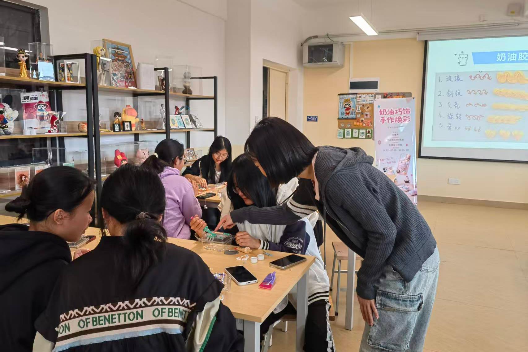 为构建传统文化与现代审美相融合的桥梁,提升学生的艺术素养与创造力,11月14日,创意设计学院于守正楼G405教室成功举办了艺术沙龙系列活动——“奶油巧饰 手作焕彩”活动。
