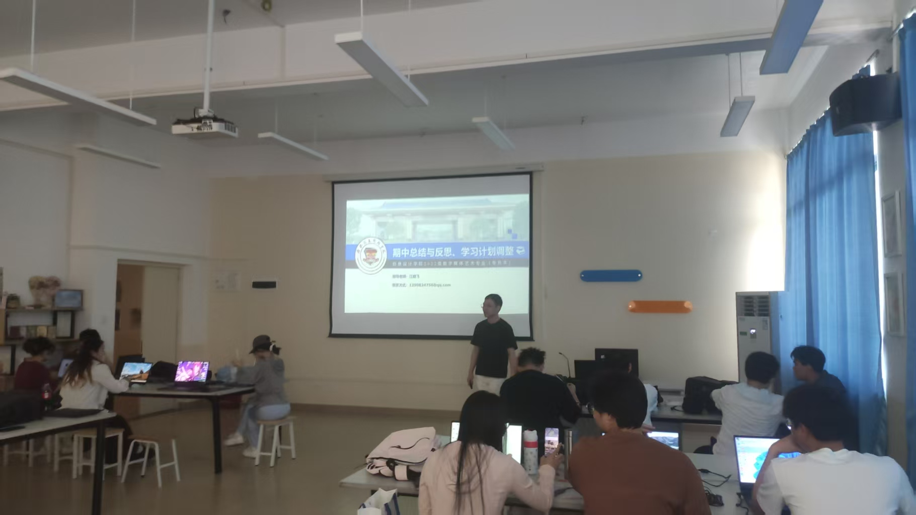会前,班主任江晓飞以问卷调查为抓手,全面收集班级同学学习现状、现有计划及疑难痛点,精准锚定学生需求。会上,班主任结合行业调研数据,深度剖析数字媒体领域有关数字动画、影视和短视频、交互设计等前沿岗位需求,并融入自身企业实践案例,揭示“技术+ 创意”复合型人才的市场缺口。针对学生普遍存在的学习和职业关系的困惑,班主任以数字动画设计岗位能力模型为例,引导学生将“掌握某一特定技术”“完成单个镜头画面设计”等短期目标融入日常计划,提高学生的设计热情和主动性。