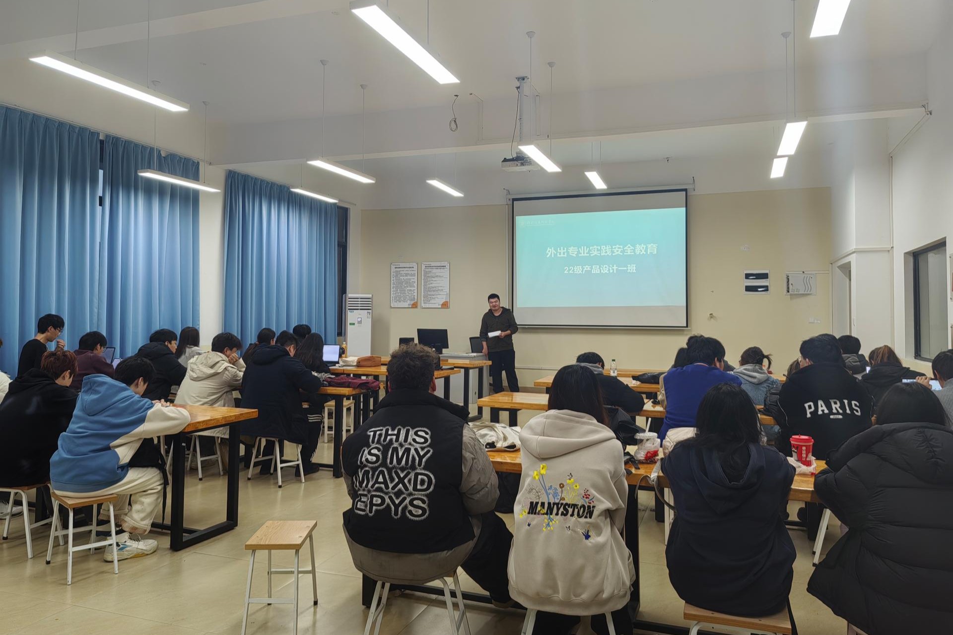 为强化同学们安全意识,确保实践活动安全、有序地进行,2025 年 3 月 13 日下午,2022级产品设计1班在德远楼E307 教室召开了外出专业实践安全教育会议。本次会议由班主任酆正禹老师主持,全班同学参加。