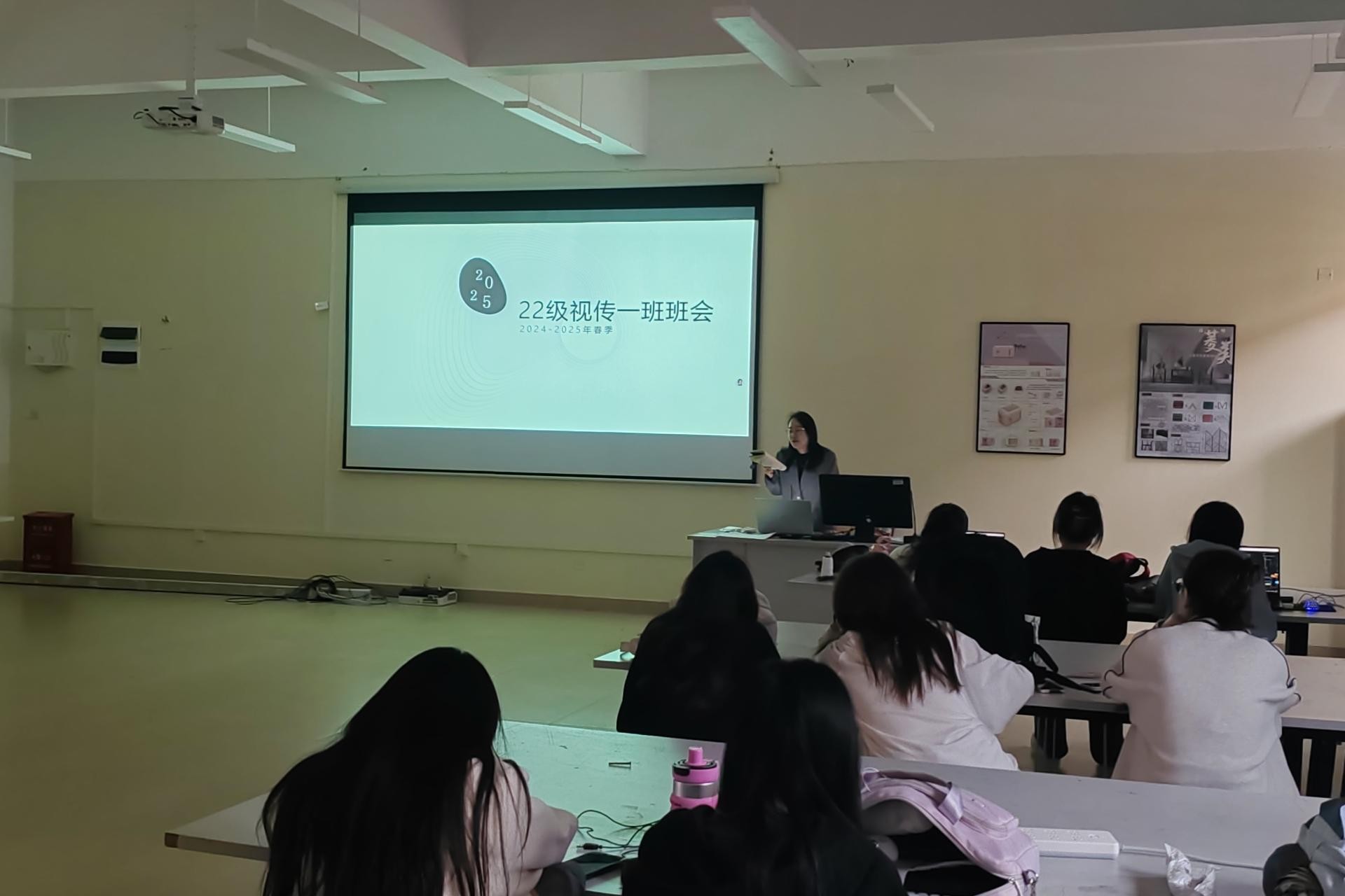 2025年3月3日,创意设计学院2022级视觉传达设计1班在德远楼E315开展了一场意义非凡的主题班会,此次班会聚焦就业创业、绿色上网以及规范网络言论等关键话题,吸引了全班同学参与。本次班会由班主任陈星老师主持。
