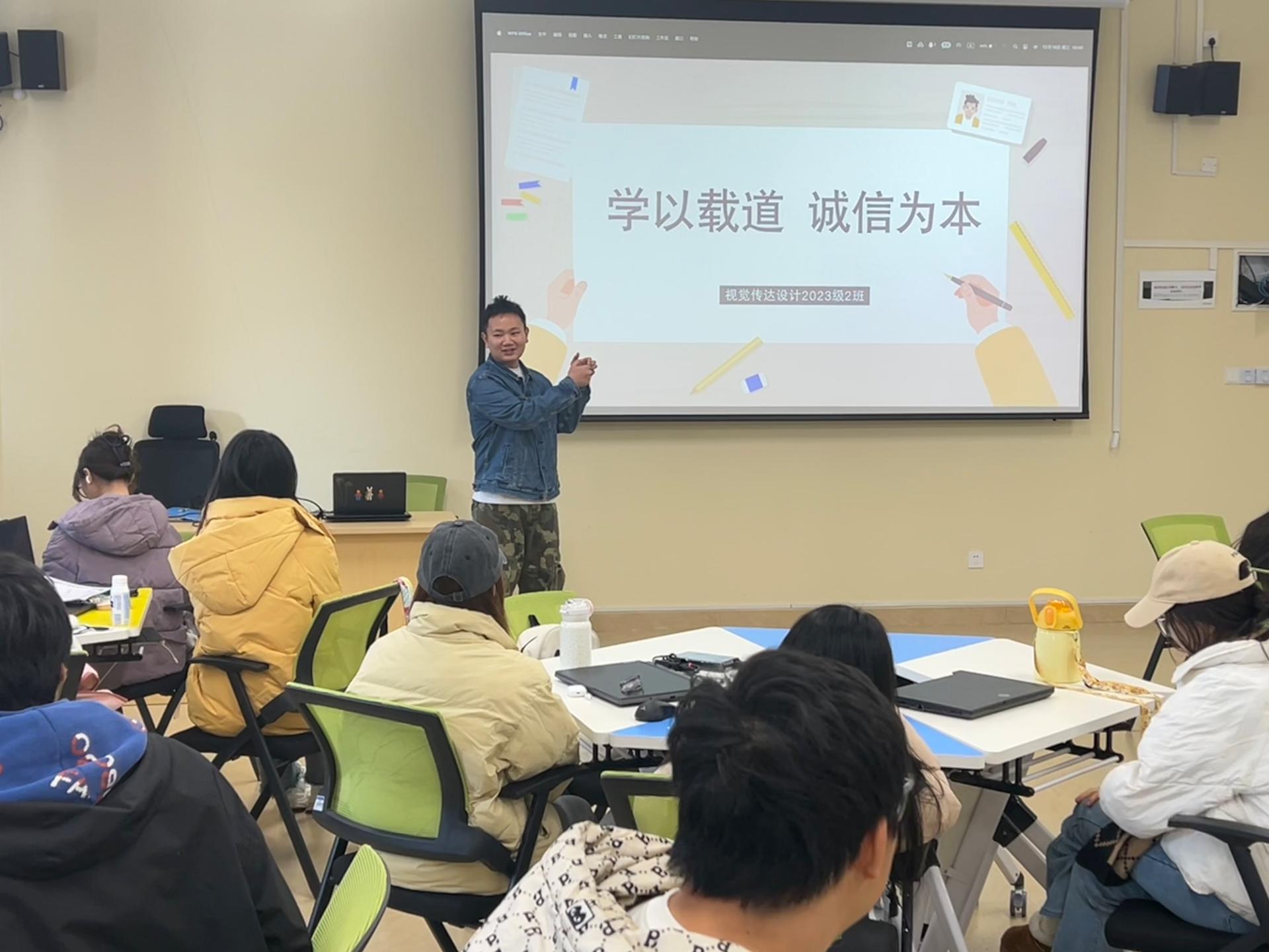 2024年12月17日,2023级视觉传达设计1 班、2 班举办了以“学以载道·诚信为本”为主题的班会,旨在积极倡导诚信考试,坚决抵制考试作弊行为,为即将到来的期末考试营造了良好的学风氛围。