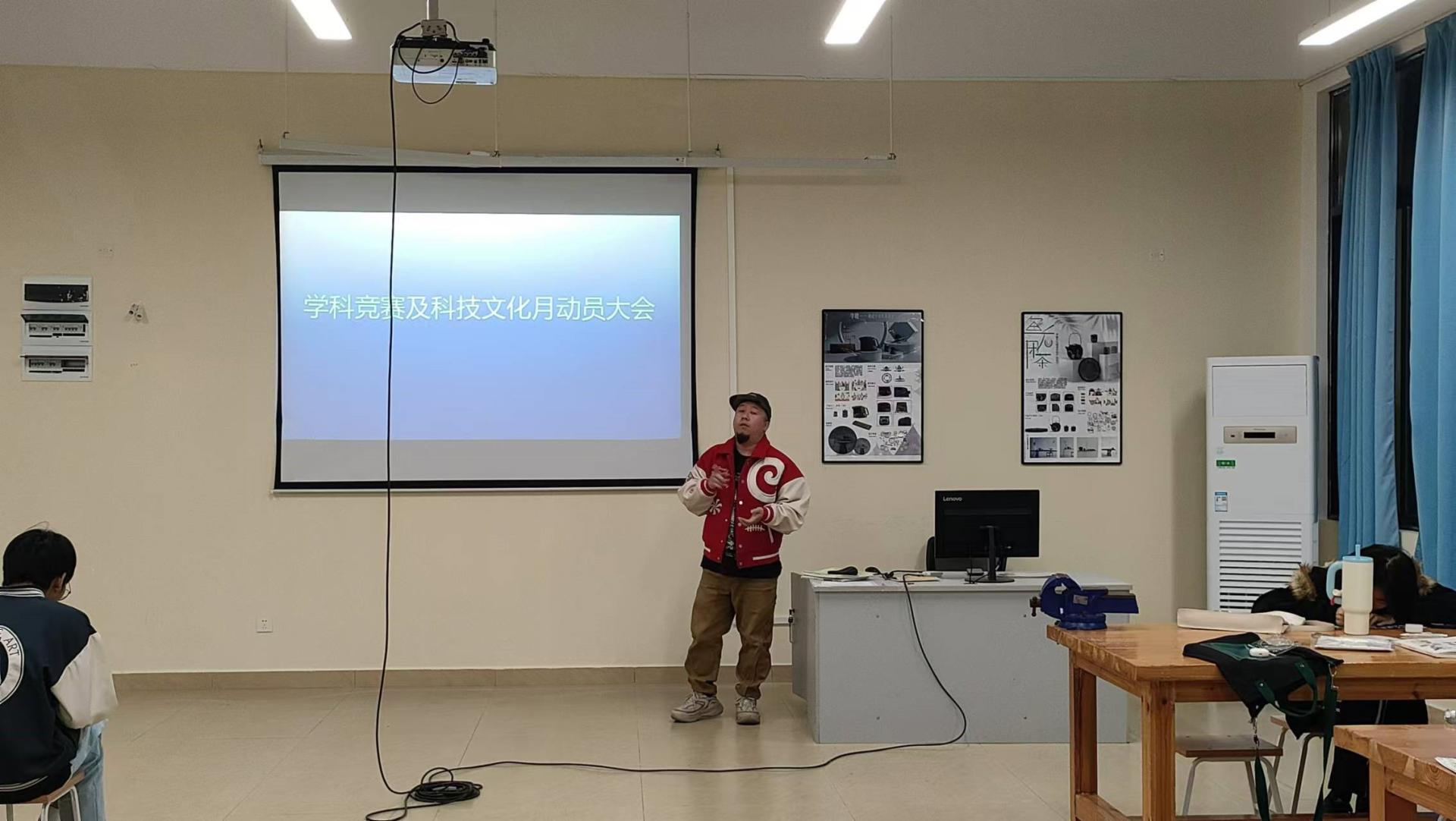 苏锐老师在会上强调了参与学科竞赛对于提升学生专业技能和创新思维的重要性,并鼓励同学们积极参与即将开展的科技文化月系列活动。