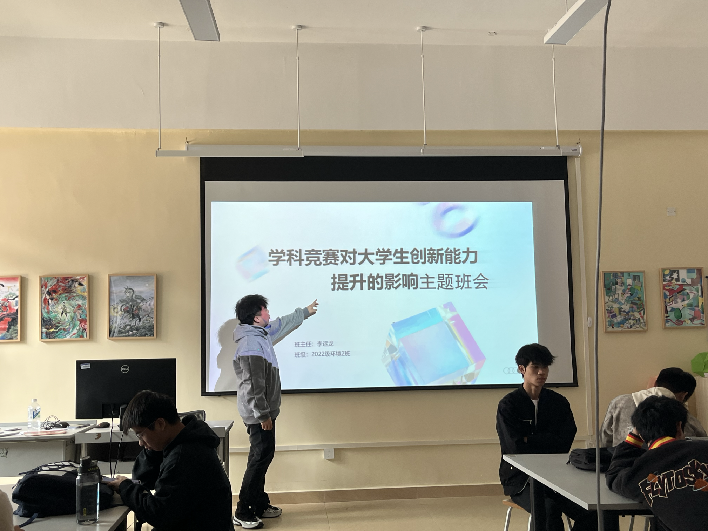 10月29日,纽约国际967线路测试创意设计学院E栋308教室内,2022级环境设计2班在李运龙老师的带领下,举办了一场主题为“学科竞赛对大学生创新能力提升的影响”的班会。