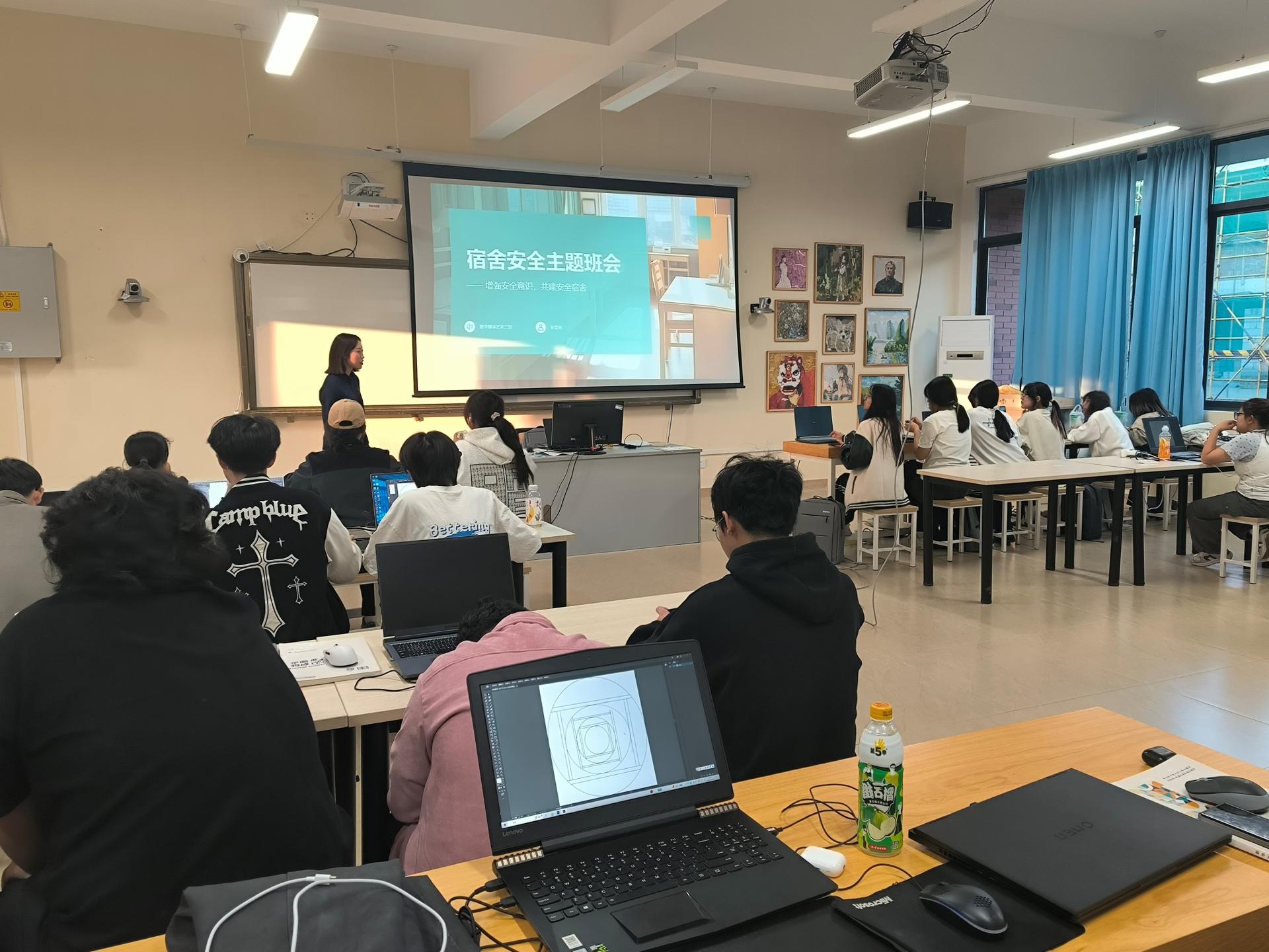 10月28日下午,2024级数字媒体艺术专业三班在创意设计学院E417教室举办了以“宿舍安全”为主题的班会。本次班会旨在提高大一新生的宿舍安全意识,普及安全知识,确保同学们在校期间的人身和财产安全。班主任张菁芮老师及全体大一学生参加了此次班会。