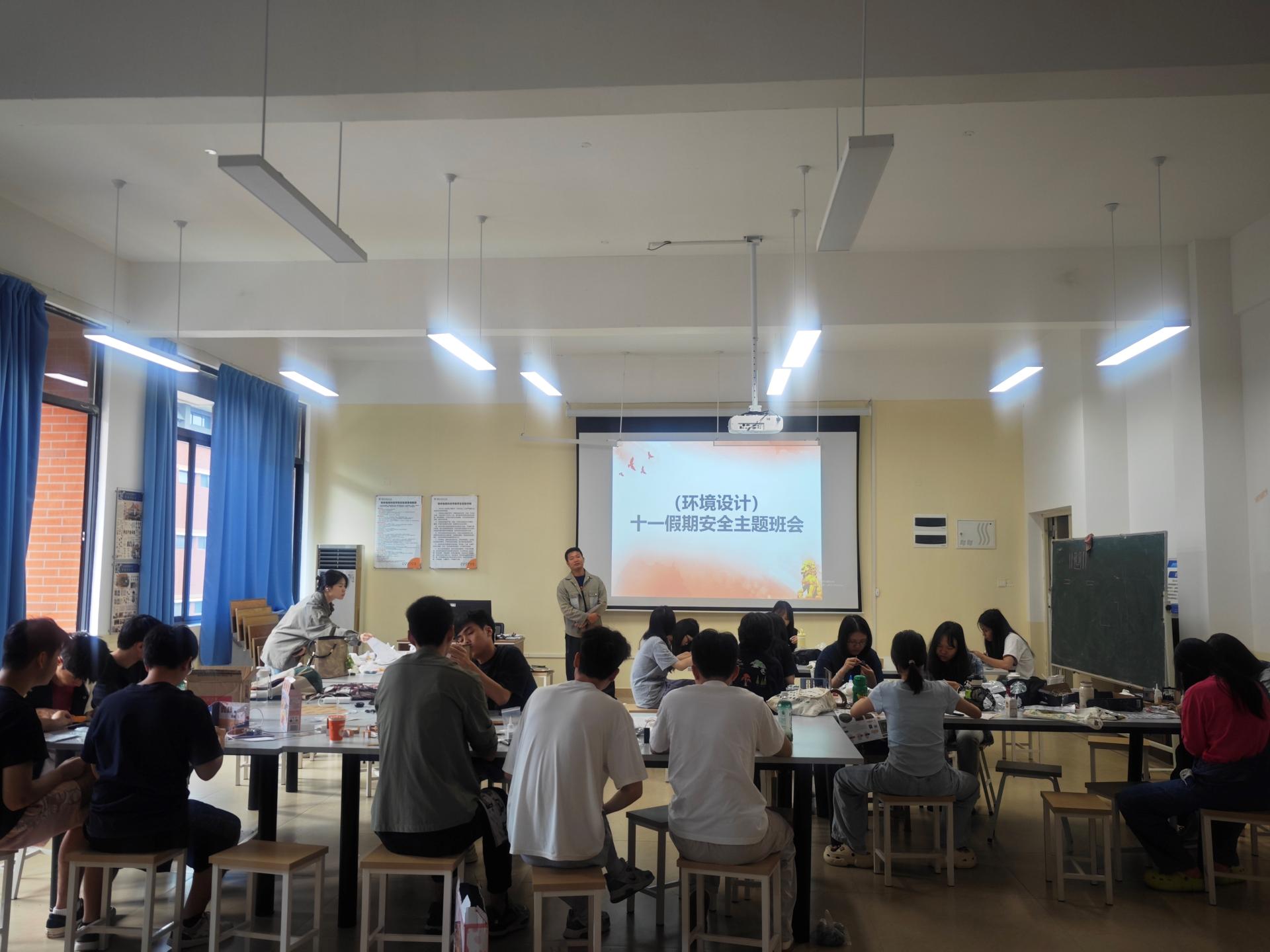 临近十一假期,2024年9月25日上午,创意设计学院环境设计专升本六班在德远楼E312开展关于“校园安全教育”的主题班会。会议由班主任胡勇文主持,21级环境设计6班全体同学参与。