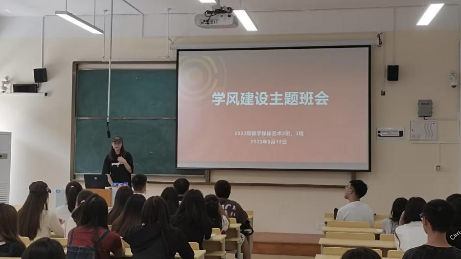 9月15日,创意设计学院数字媒体艺术二班和三班举行了新生学风建设主题班会。班会由班主任刘昊老师主持。
