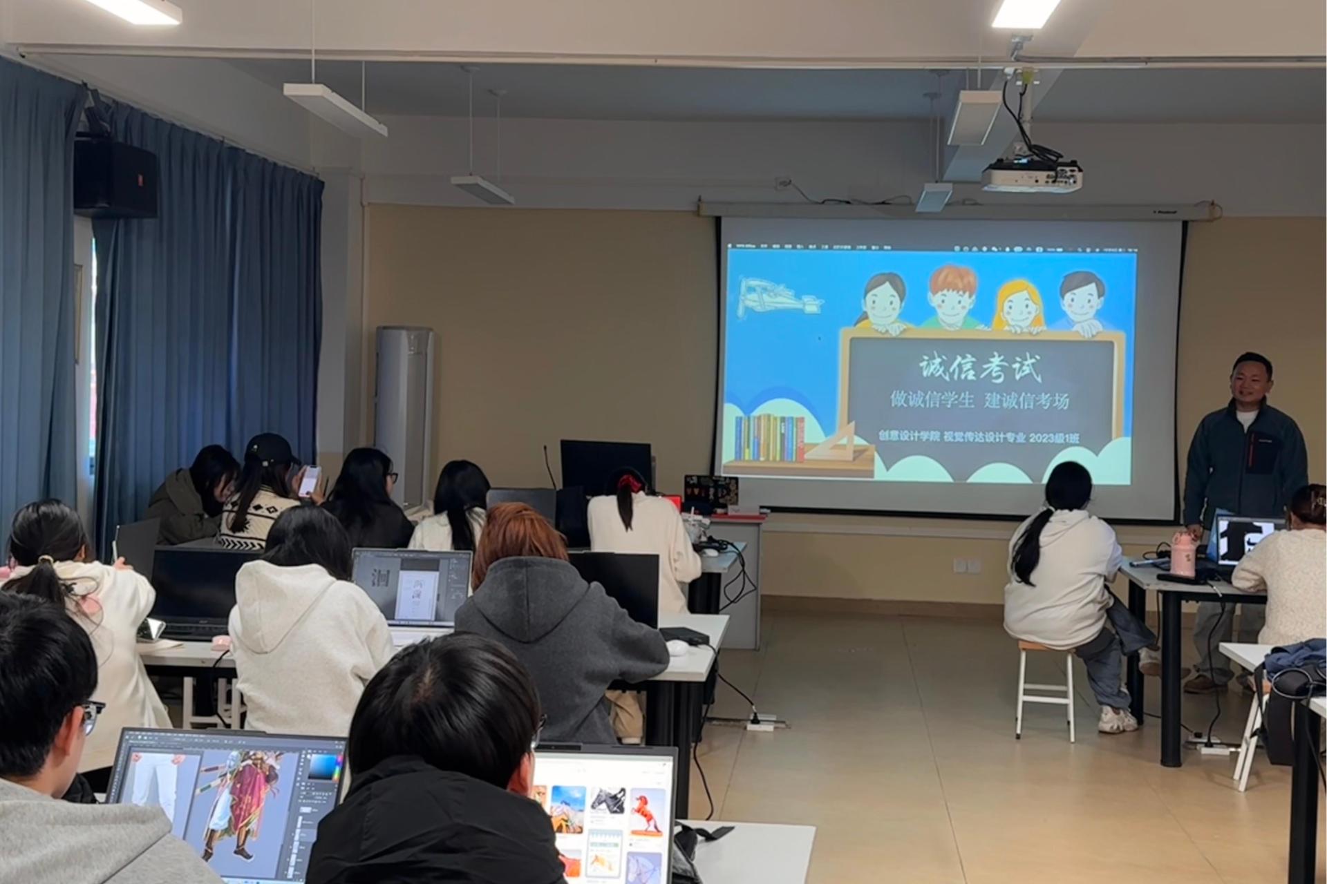 为进一步加强考风考纪教育,引导学生树立诚信应考的良好意识,在全国大学英语四、六级考试即将来临之际,近日,2023级视觉传达设计1班和2班召开“诚信考试”主题班会。