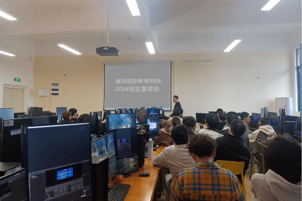 宣讲伊始,凤凰威风国际教育科技有限公司的代表向在场的师生们详细介绍了公司的基本情况和业务范围。作为国际教育领域的领军企业,凤凰威风国际教育公司一直致力于提供高品质的教育服务和文化交流项目,其业务范围涵盖国际课程合作、留学咨询、教师培训等多个领域。接着,公司代表针对动画、数字媒体艺术的专业特点,详细阐述了专业岗位的任职要求、工作内容以及发展前景,让在场的同学们对凤凰威风国际教育公司的岗位需求有了更加清晰的认识。在互动环节,同学们就岗位工作内容、发展前景等问题进行了提问。公司代表耐心解答,并作就业指导答疑。
