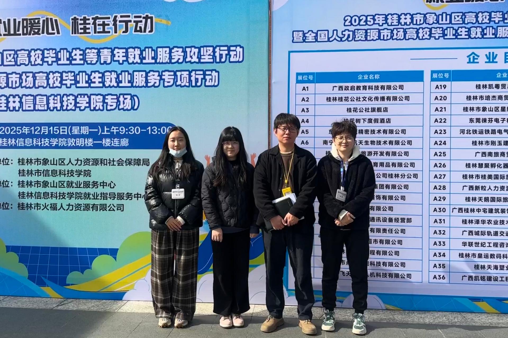 为深入贯彻落实国家关于高校毕业生就业工作的决策部署,积极搭建毕业生与用人单位之间的高效对接平台,助力2026届毕业生实现高质量充分就业,12月15日,2025年高校毕业生等青年就业服务攻坚行动暨全国人力资源市场高校毕业生就业服务专项行动校园招聘会在敦明楼一楼连廊成功举办。创意设计学院高度重视毕业生就业工作,学院副院长李辉、党总支副书记刘珊珊、毕业班辅导员与2026届毕业生共同参与此次招聘会。