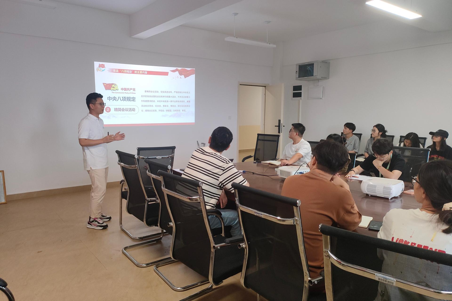 进一步强化党员纪律意识,规范党员言行,2025年6月11日,创意设计学院第二学生党支部于守正楼G517党员活动室召开了深入贯彻中央八项规定精神学习教育专题辅导授课活动。本次活动有幸邀请到马克思学院田家东老师前来授课,支部全体党员积极参与,接受了一次深刻的理论学习与思想洗礼。