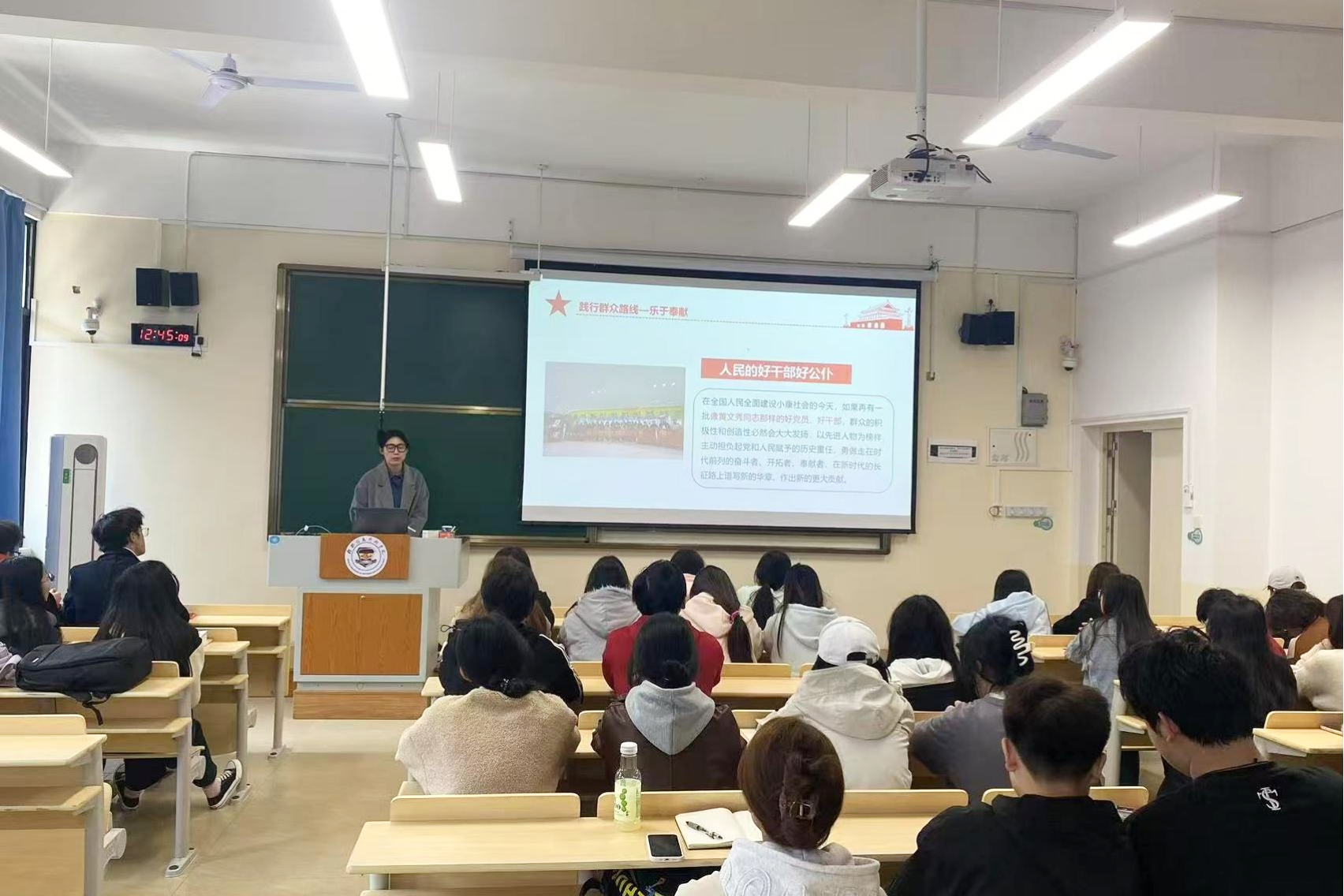 团课上,李文敏老师深入解读了雷锋精神的内涵与时代价值。她通过讲述雷锋的经典事迹,阐述了雷锋精神在新时代的延续与发展。她指出,雷锋精神不仅是无私奉献、助人为乐的象征,更是一种积极向上的人生态度。她鼓励同学们从身边小事做起,将雷锋精神融入日常生活。李文敏老师强调,新一代青年是强国发展的生力军,肩负着推动社会进步、实现民族复兴的重任,激励同学们树立远大理想,培养家国情怀,不断提升自身素质,以实际行动响应时代号召,为国家发展贡献力量。