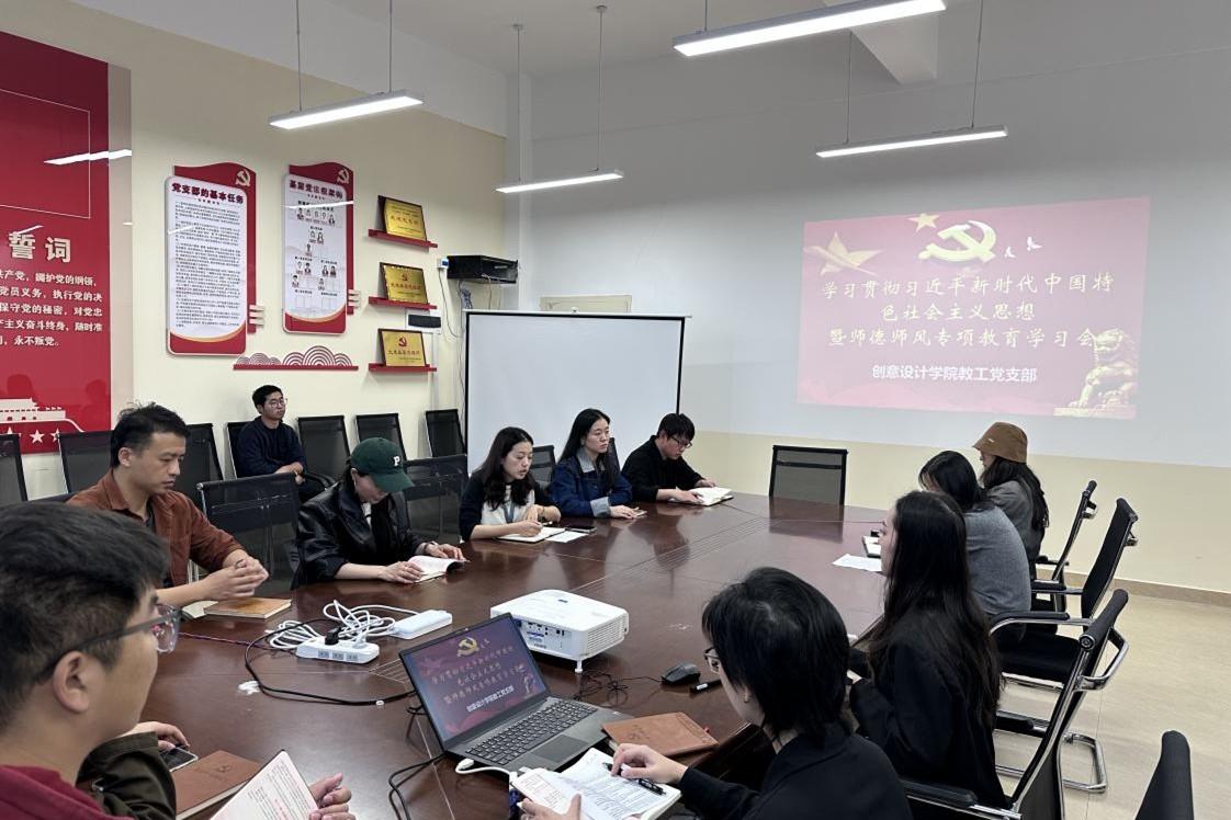 为贯彻习近平新时代中国特色社会主义思想,进一步加强师德师风、教风、学风与工作作风建设,10月31日上午,创意设计学院教工党支部在E504召开议题为“学习贯彻习近平新时代中国特色社会主义思想主题教育暨师德师风专题教育学习”的主题会议。会议由支部书记梁瑛主持,支部全体党员参加了会议。