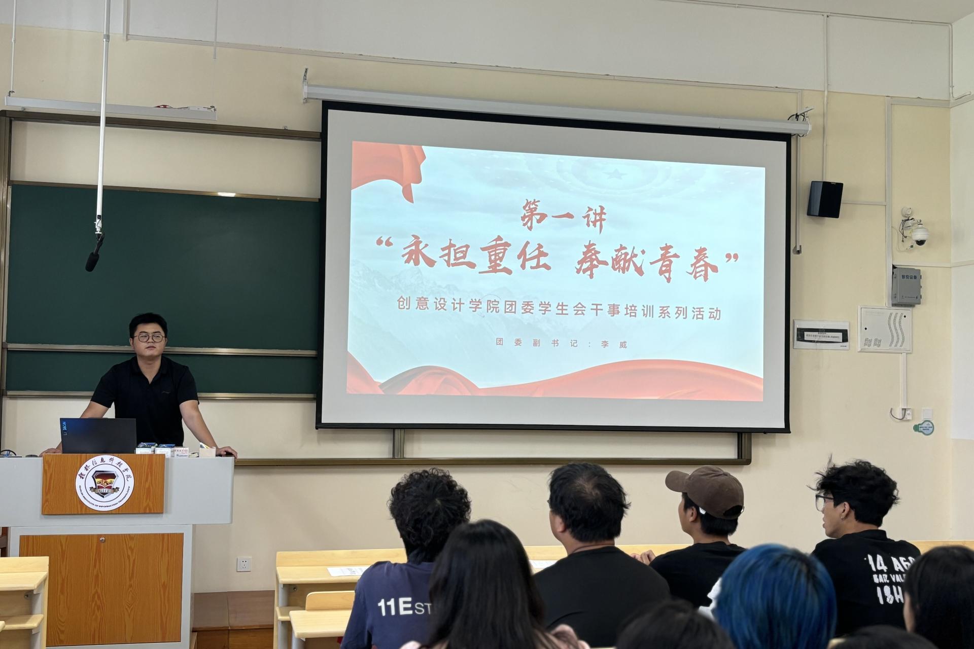 为提升学生干部的组织能力和综合素质,推动学院团学工作的全面发展,9月26日,创意设计学院在D111教室顺利开展干事培训系列活动——“勇担重任,奉献青春”。本次活动由学院团委副书记李威主讲,两委全体成员参加。