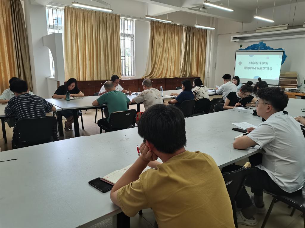 为进一步加强我院教师队伍建设,提高教师自身修养,全面推进我院党风廉政建设,创意设计学院于7月1日在42201教室召开师德师风专题学习会,会议由创意设计学院党总支书记黄云鹏主持,全体教工参会。
