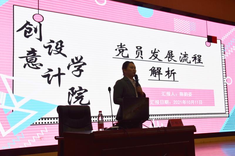 陈韵姿老师首先向大家介绍学院党员发展的比例、现状,讲解了要成为一名党员需要具备怎样的条件,并详细讲解了党员发展的相关流程。其次陈韵姿老师组织同学们观看视频“为什么要成为一个共产党员”,通过模范人物解析,实例分享,让同学进一步理解党员的使命和责任,也让同学们进一步明确要发展成为党员各方面应具备的素质和条件。最后分享了近一年来我院党员队伍三会一课开展情况和志愿服务开展情况。