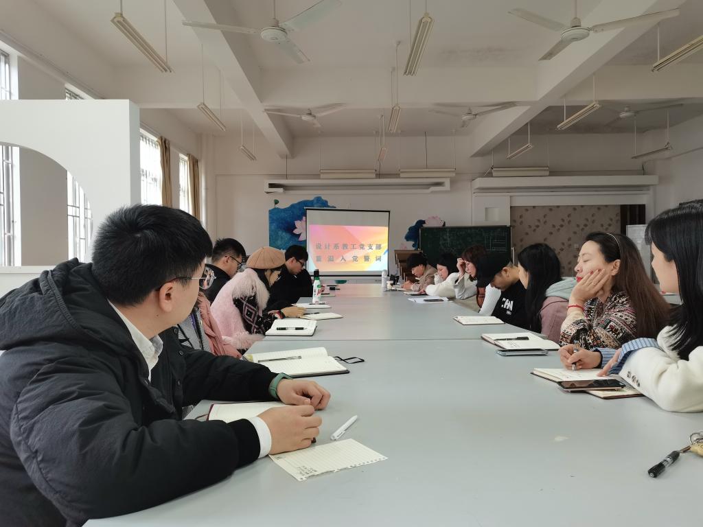 为增强党组织凝聚力,加强党员党性修养,4月9日,设计系教工党支部在42201教室开展以“重温入党誓词、牢记党的宗旨”为主题的党日活动。会议由支部书记田婧主持,全体教工党员参加了此次会议。
