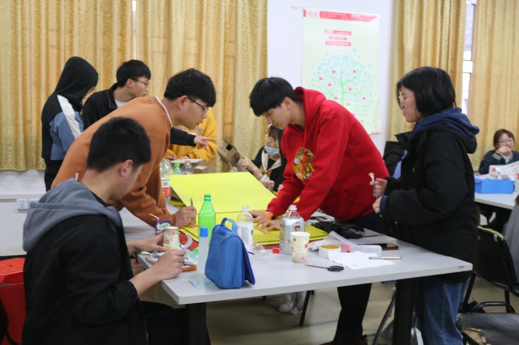 此次活动流程包含:作品展示、设计理念讲解、评委打分、名次公示、颁奖合影。本次大赛共有28个小组参赛,参赛小组利用废弃纸箱、瓶子、杯子、灯等物品设计制作出收纳盒、书架、笔筒等工艺品。即实用又美观,体现了绿色环保、可持续发展的理念。作品创意丰富、外形精美、设计合理、体现了同学们卓越的创新思维和实践能力。