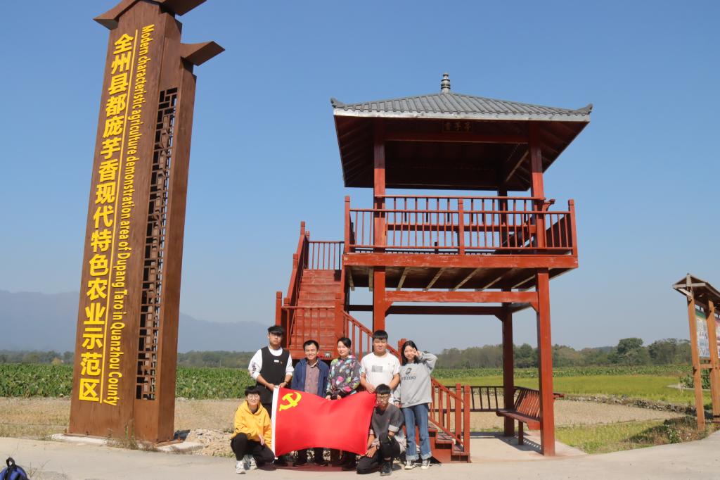 此次实践活动由设计系组织员陈韵姿和设计系第一学生党支部书记刘思带队,四名具有专业特长的学生党员同志随行,在各地镇政府工作人员的陪同下分别前往全州县安和镇芋头种植示范基地、安和镇龙井村景区、咸水镇柑橘种植基地、咸水镇扶贫车间开展农产品宣传视频拍摄和农产品宣传照拍摄工作。