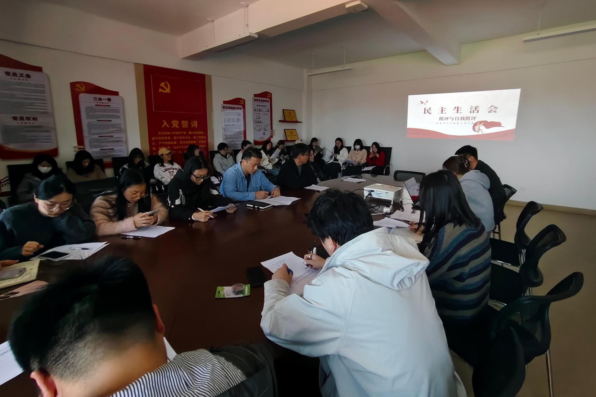 会上,支部书记首先代表支部委员会作对照检查,聚焦理论学习深度不足、党建业务融合创新不够等问题提出整改方向。随后,党员教师们逐一开展自我批评,结合教学科研、学生指导、社会服务等工作实际,直面短板弱项。在相互批评环节,与会同志以“团结-批评-团结”为原则,既指出目前存在的具体问题,又提出建设性意见,现场气氛严肃而热烈。