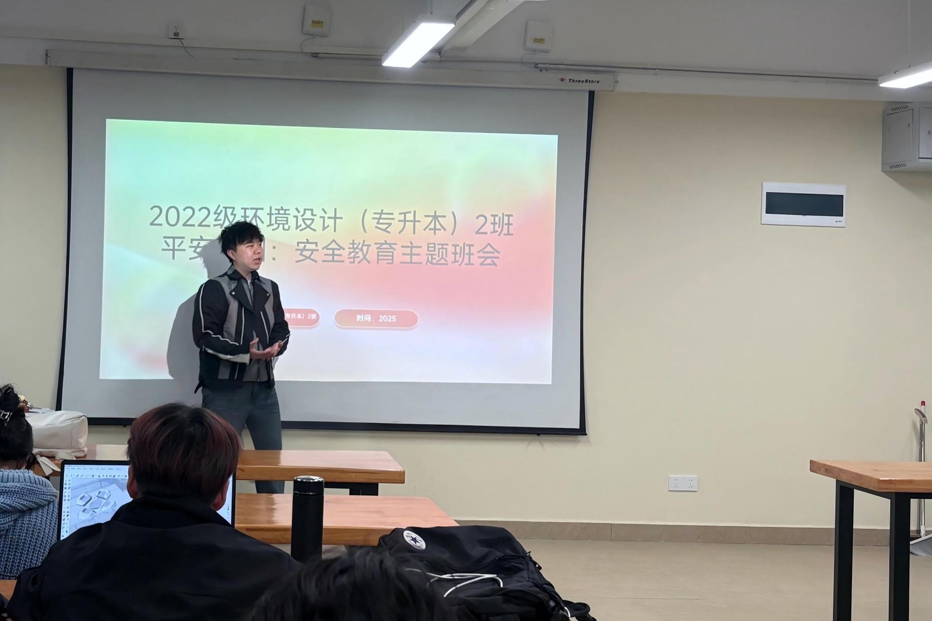 筑牢安全防线,共建平安校园——2022级环境设计专升本2班召开校园安全主题班会
