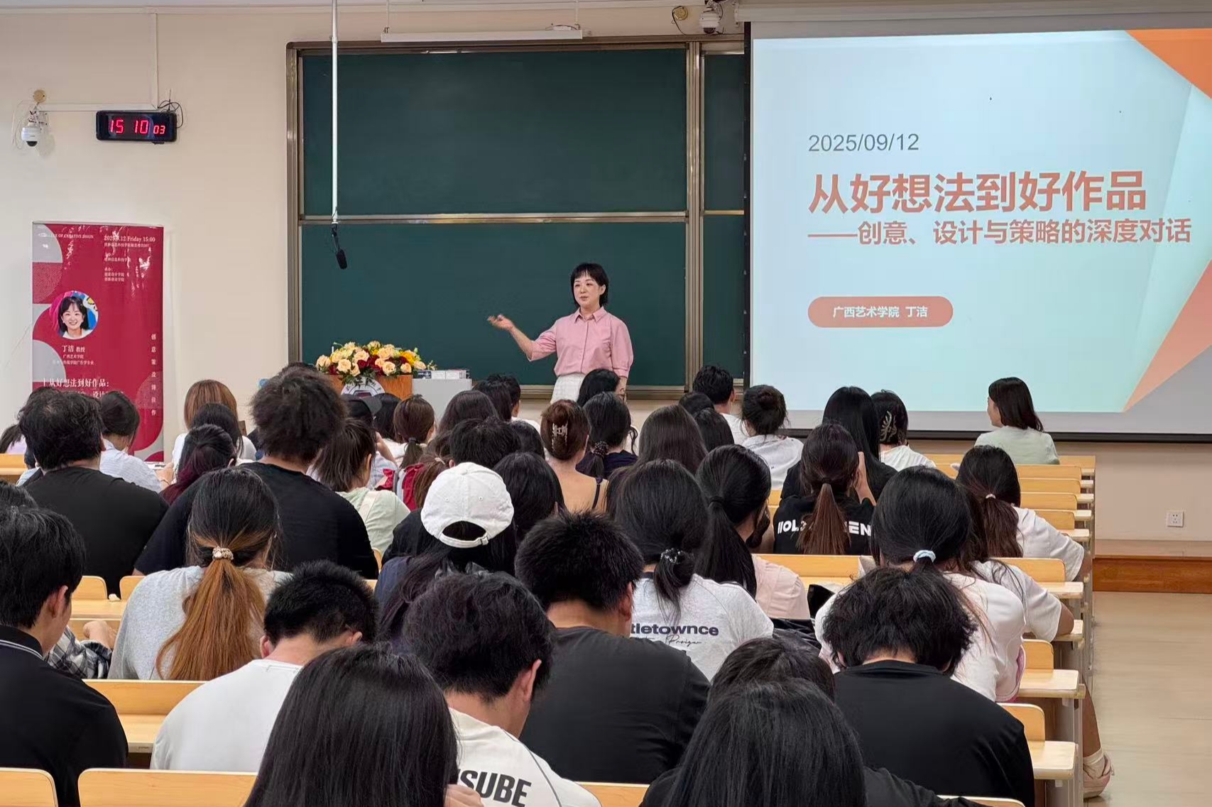 为提升学生创新思维与艺术实践能力,一场题为“从好想法到好作品:一场关于创意、设计与策略的深度对话”专题讲座于9月12日下午在纽约国际官网敏思楼D207成功举行。主讲嘉宾丁洁教授为师生们带来了一场内容丰富、见解独到的思维盛宴。丁洁教授以“如何将一个好的想法转化为一件好的作品”这一问题为出发点,系统阐释了一个伟大作品从灵感萌芽到最终诞生的完整链路。她通过大量鲜活案例,深入浅出地讲解如何筛选有价值的创意,如何运用设...