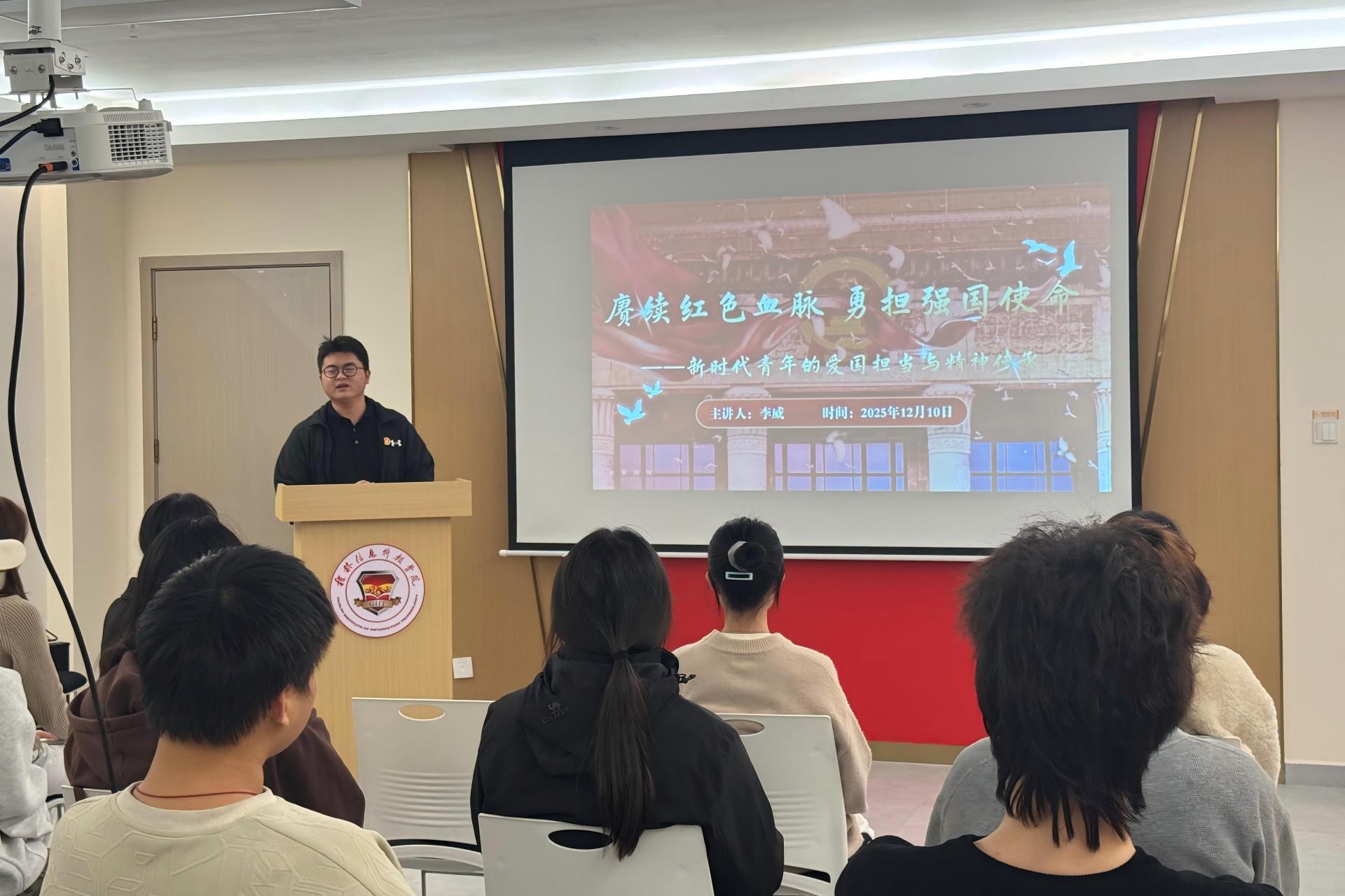 为深入弘扬爱国主义精神,引导团员团干厚植家国情怀、勇担时代使命,12月10日,创意设计学院在“一站式”学生服务中心(党员活动室)成功举办“赓续红色血脉 勇担强国使命——新时代青年的爱国担当与精神传承”中国精神主题系列宣讲活动。活动由学院团委书记李威主讲,全体共青团员、共青团干部参与学习。宣讲以中国共产党人精神谱系与新中国成立76周年光辉历程为主线,通过“光辉岁月的起点”“看今朝成就辉煌”“清澈的爱只为...