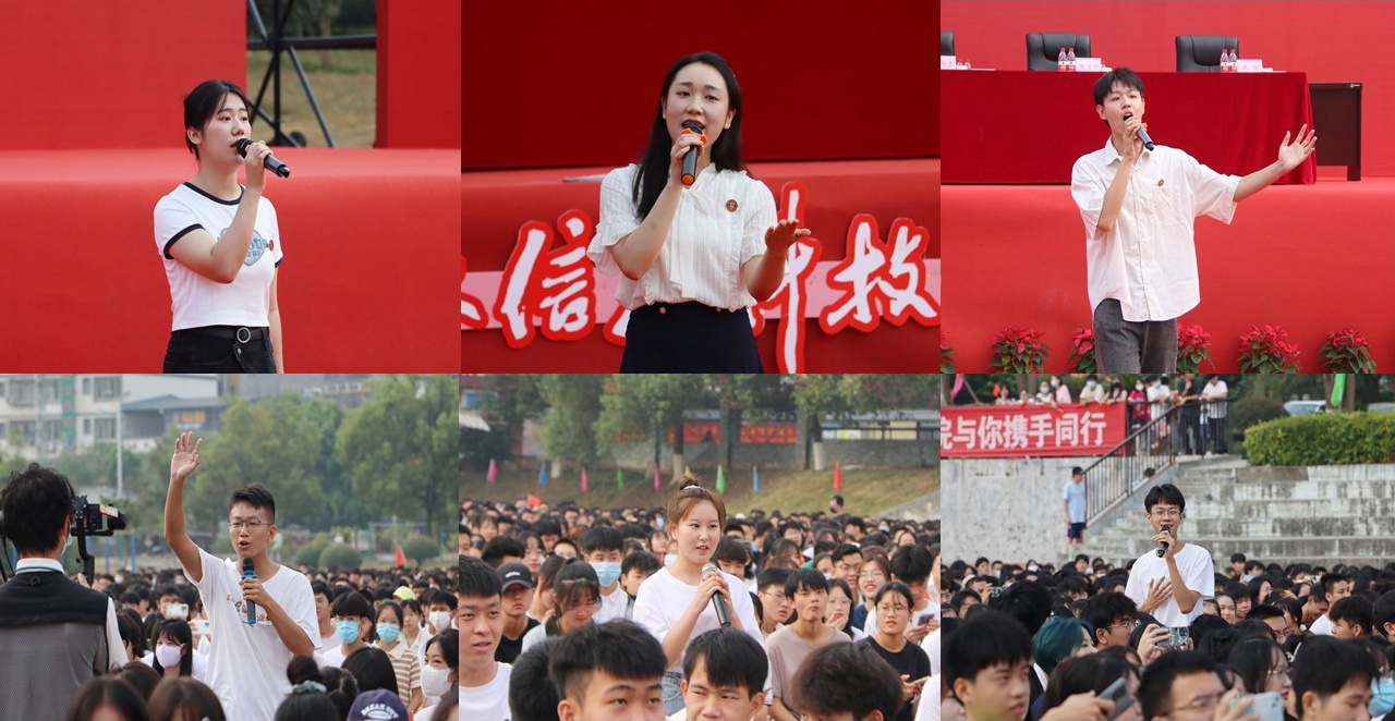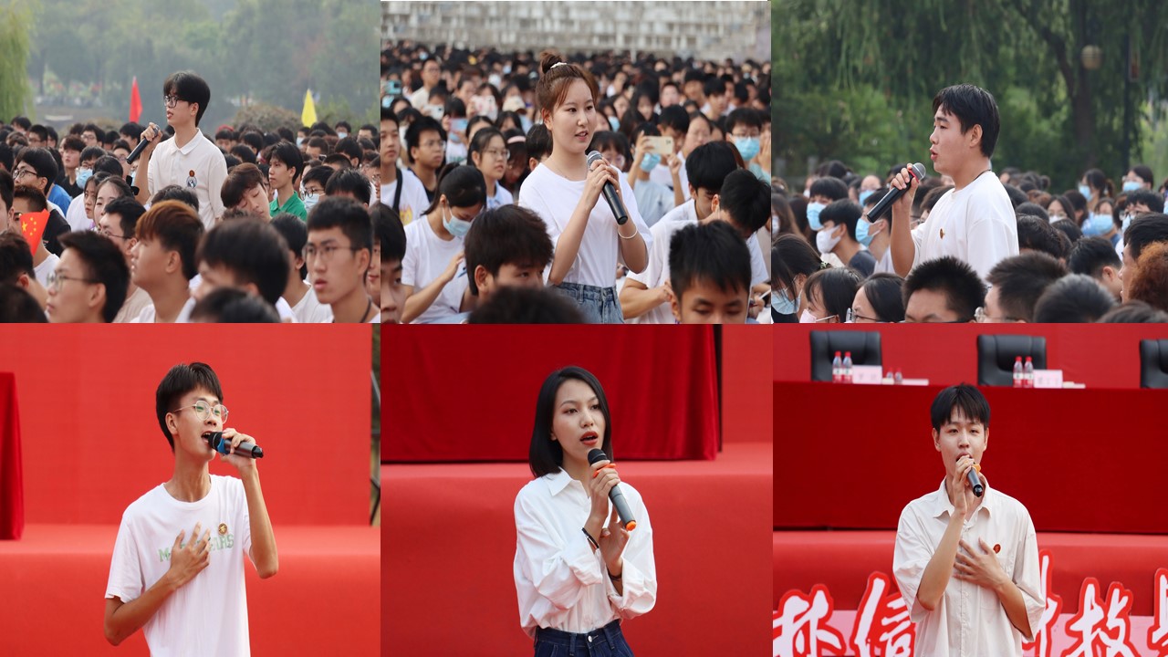 焦湃同学作为新生代表上台带领全体新生宣誓