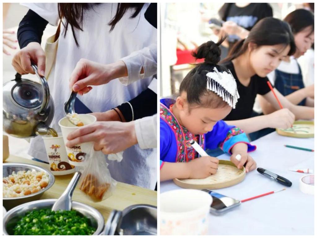 活动期间,同学们通过“民族服装体验”、“民族美食体验”、“民族手工工艺体验”等体验活动,感受民族文化的独特魅力,同时在“方言猜猜看”、“抛绣球”、“跳竹竿舞”等丰富多彩的游戏过程中,赢得各种富有民族特色的精美礼品。此外,现场的民族才艺展示和山歌对唱表演,也尽显民族传统文化的风采,洋溢着浓浓的壮乡文化和青春气息。
