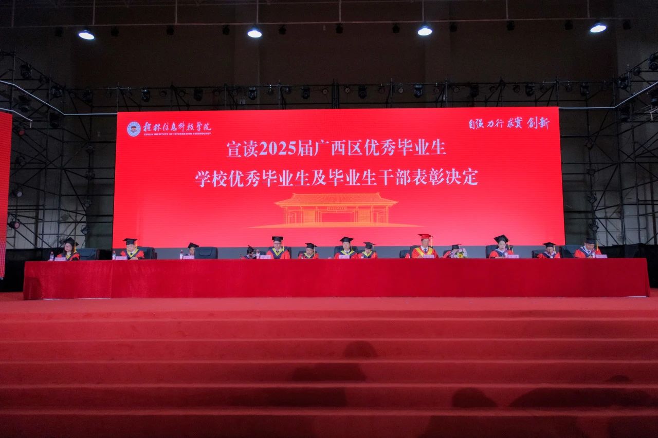 副校长李桂华宣读2025届广西优秀毕业生、学校优秀毕业生及毕业生干部表彰决定。学校领导分别为2025届广西优秀毕业生、学校优秀毕业生、学校优秀毕业生干部颁发了荣誉证书。