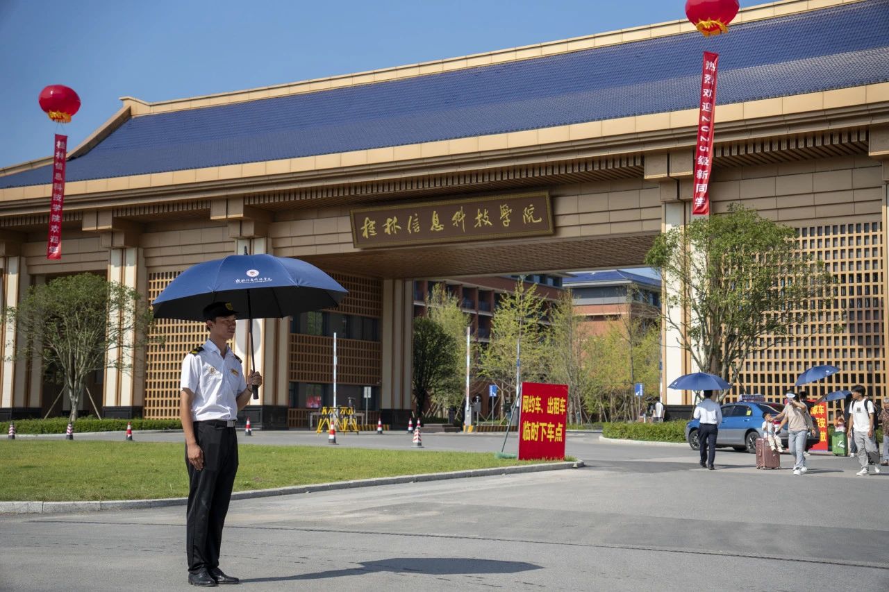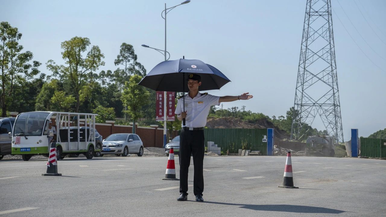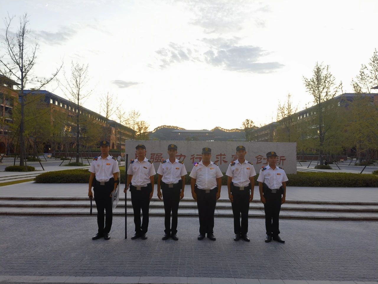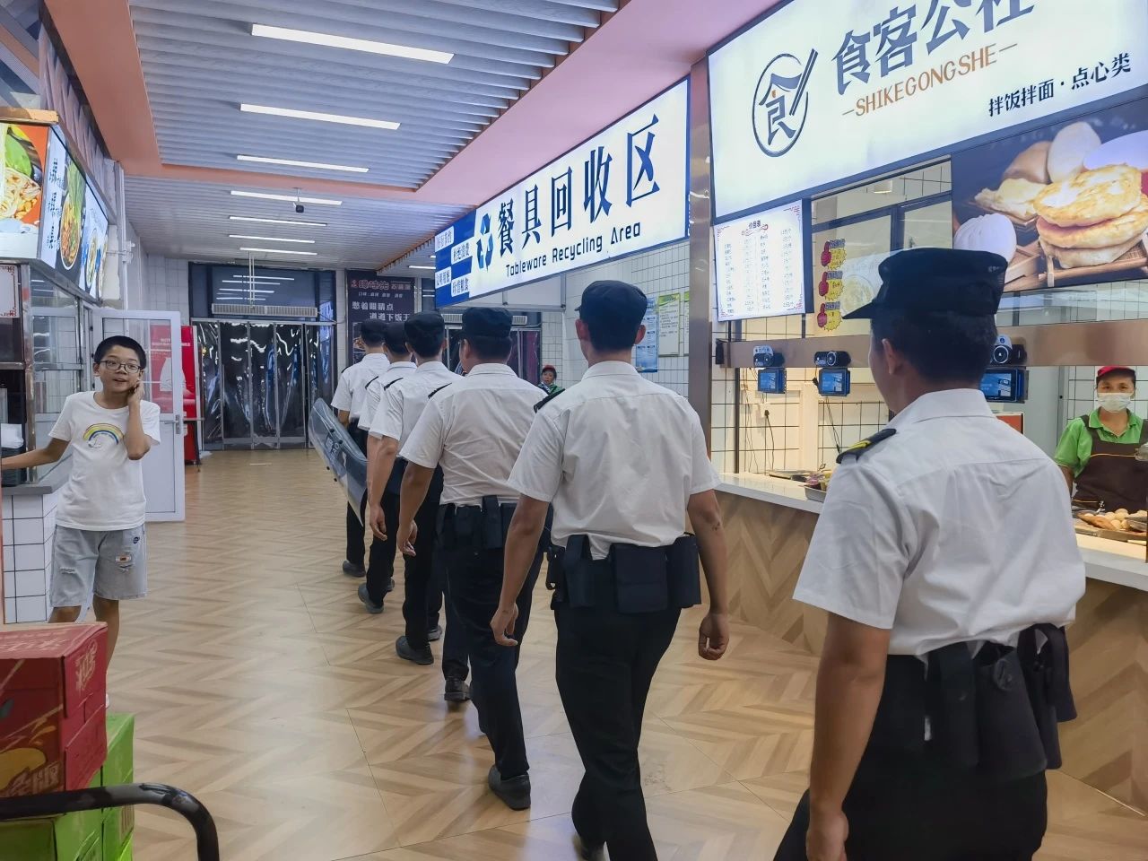 从晨曦的第一缕阳光开始巡逻、烈日暴晒下的交通指挥、各个接驳点的秩序维护到深夜的安全守护,他们的目光始终坚定。校门前,保卫队员们笔挺守候,指挥、巡逻,为校园撑起一张安全的网。