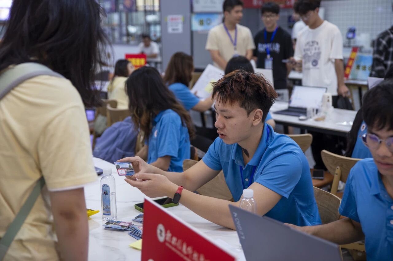 酷暑八月,新的篇章在校园里缓缓展开。人潮涌动中,有这样一群人,用自己的身影织就了迎新的底色。
