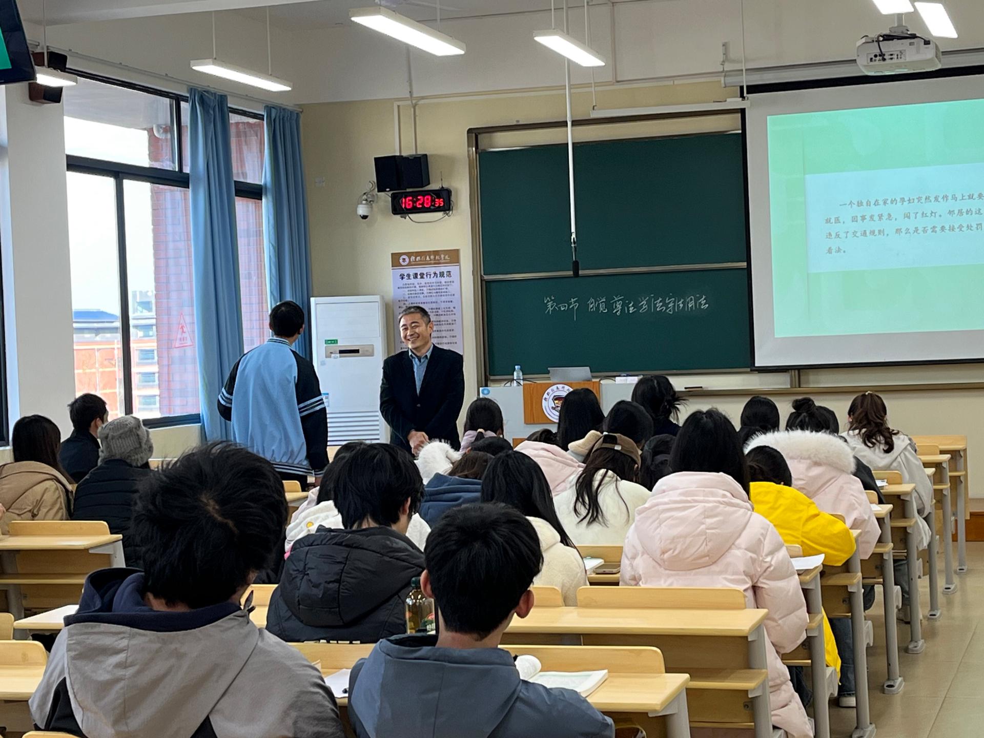 1月8日下午,学校党委副书记李飞为电子工程学院大一学生讲授《思想道德与法治》课。