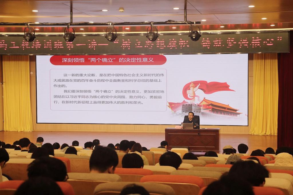 甘勇书记在本年度“青马工程”开班第一课上为师生代表们讲授了题为《树立思想旗帜,铸就坚强核心》的专题团课。在一个半小时的团课中,甘勇书记围绕当下青年关注的热点问题和时政热点话题,紧扣习近平新时代中国特色社会主义思想的理论内涵和新时代青年的使命与担当,和大家分享了《新时代党和国家事业取得的历史性成就、发生的历史性变革:“十三个方面”》的相关内容。他表示,这些历史性成就和历史性变革的实现,离不开几代共产党人的辛苦付出和努力,离不开习近平新时代中国特色社会主义思想的科学指引。他强调,希望广大信科青年认真学习领会习近平新时代中国特色社会主义思想,努力掌握这一重要思想的世界观和方法论,善于运用贯穿其中的立场观点方法分析问题,深刻领悟“两个确立”的决定性意义,坚持“两个结合”、增强“四个意识”、坚定“四个自信”、做到“两个维护”,牢记“十个明确”、“十四个坚持”,做有理想、敢担当、能吃苦、肯奋斗的新时代好青年,为学校加快建设成应用型高水平民办大学贡献青春力量。