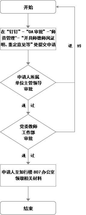 开具师德师风证明、鉴定意见等材料申请流程图
