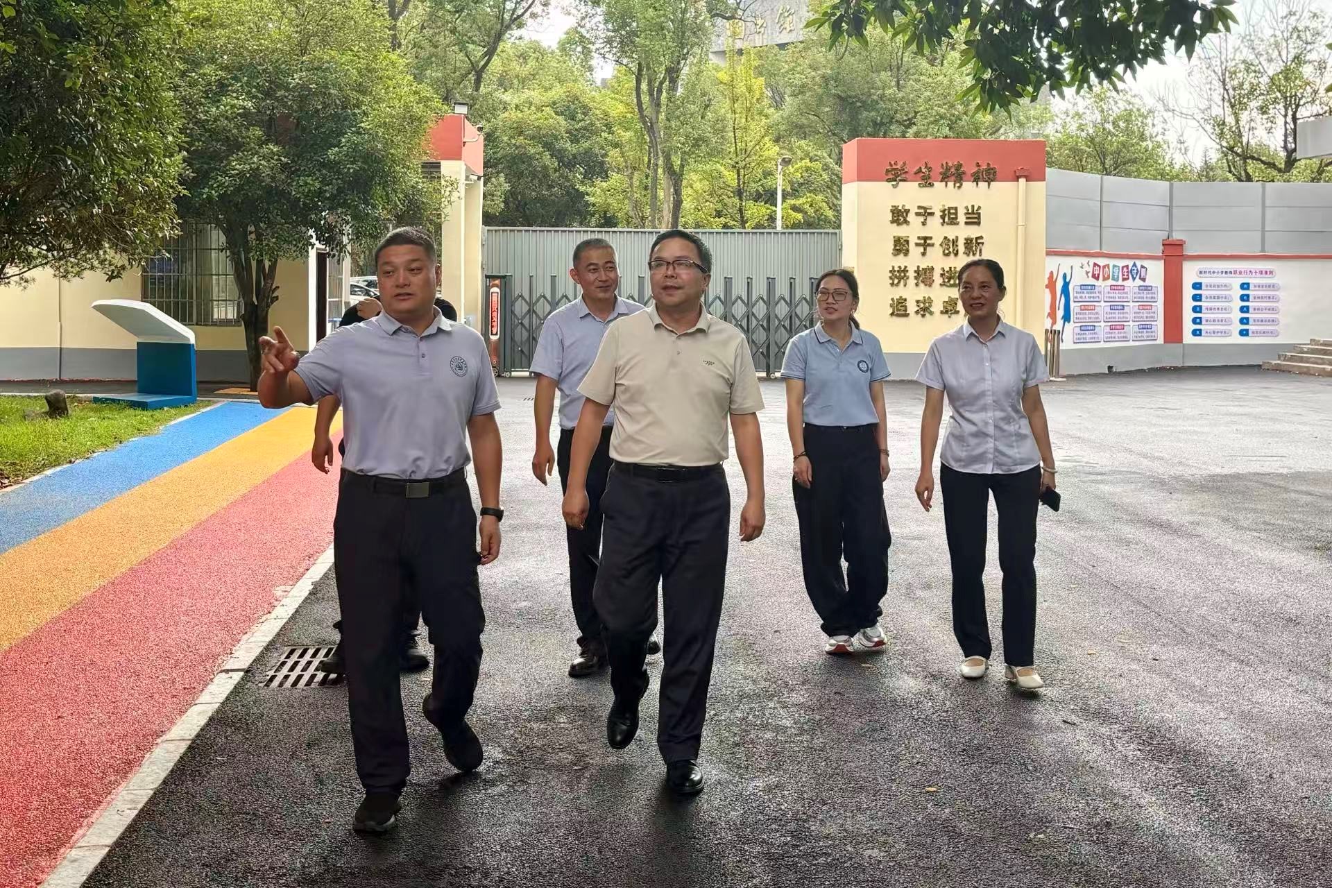 慰问团在杨剑主任的陪同下参观了校园,详细了解桂电附属学校的办学特色、师资建设及教学管理情况,双方围绕校际资源共享、教育发展等话题展开交流。